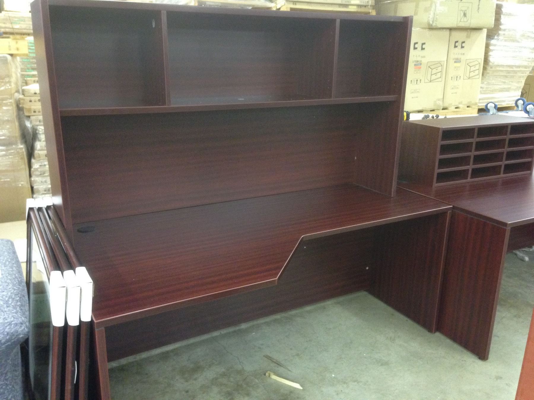 MAHOGANY 6' CORNER COMPUTER DESK WITH HUTCH