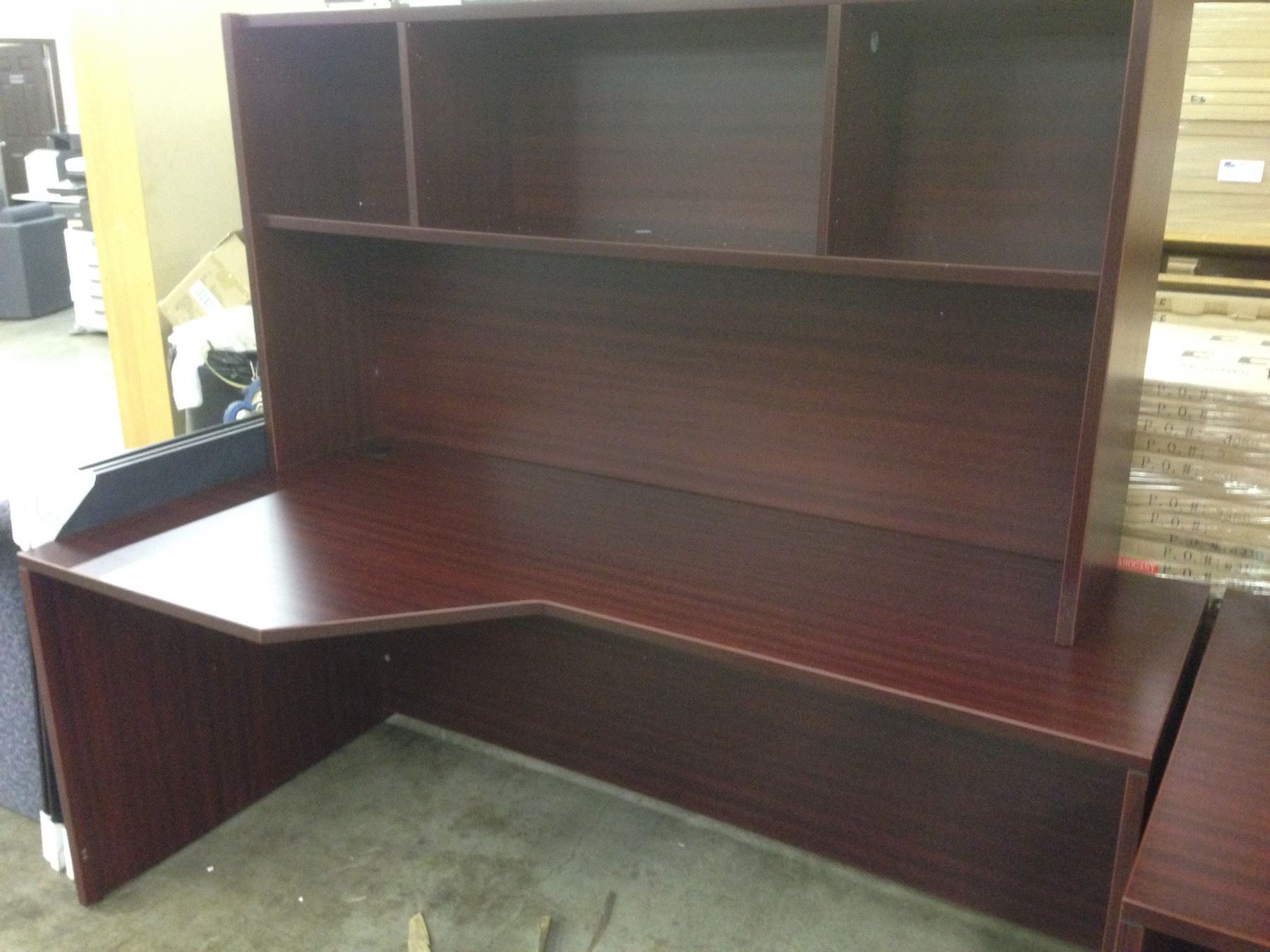 MAHOGANY 6' CORNER COMPUTER DESK WITH HUTCH