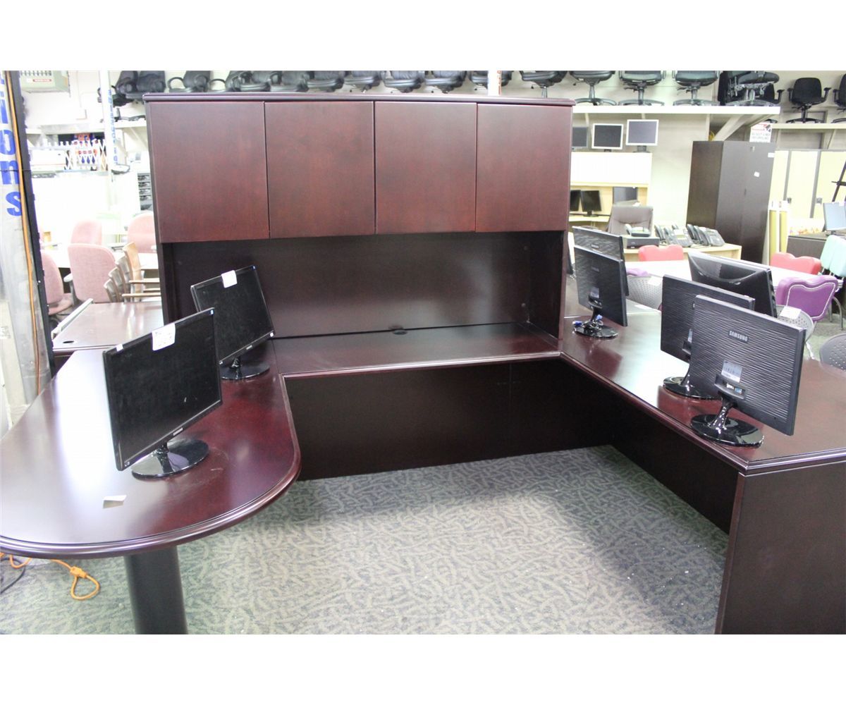 MAHOGANY BOW FRONT EXECUTIVE DESK WITH HUTCH