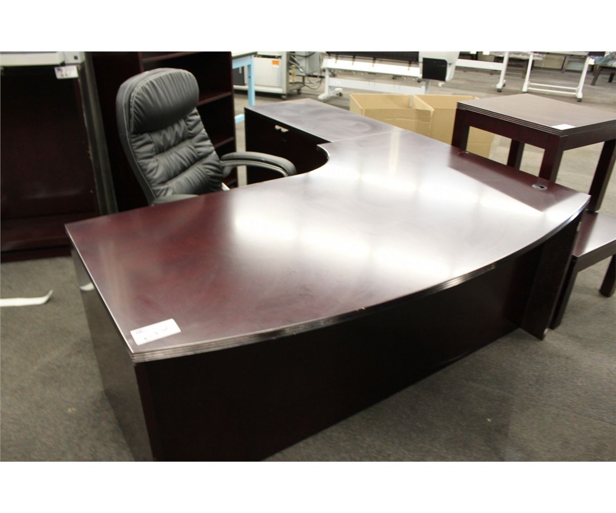 MAHOGANY BOW FRONT L SHAPE EXECUTIVE DESK