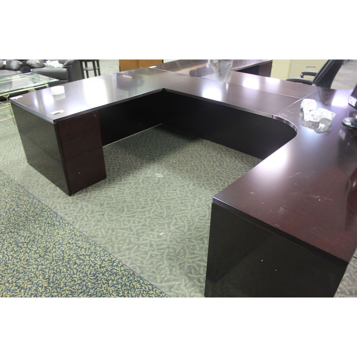 MAHOGANY BOW FRONT U-SHAPED DESK WITH PEDESTAL RIGHT HAND