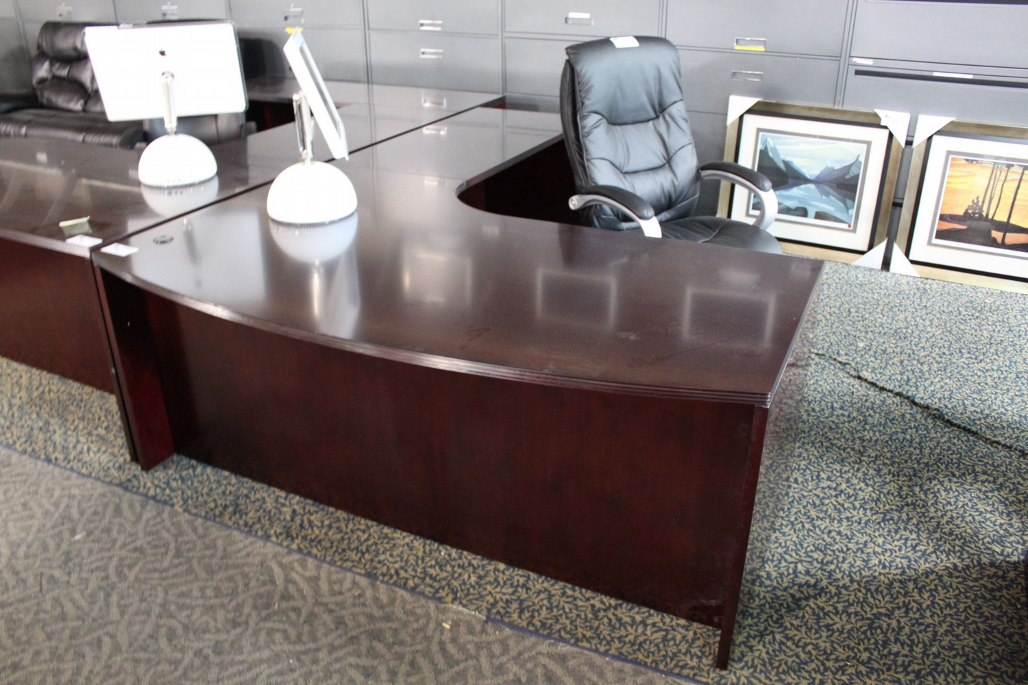 MAHOGANY BOWFRONT L-SHAPE EXECUTIVE DESK