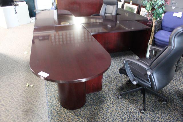 MAHOGANY BULLET TOP L-SHAPE EXECUTIVE DESK