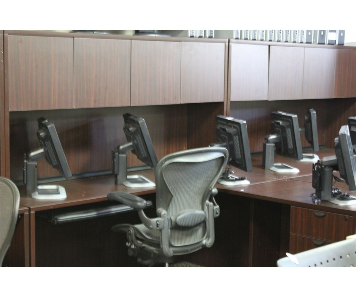 MAHOGANY CORNER WORK STATION WITH HUTCH