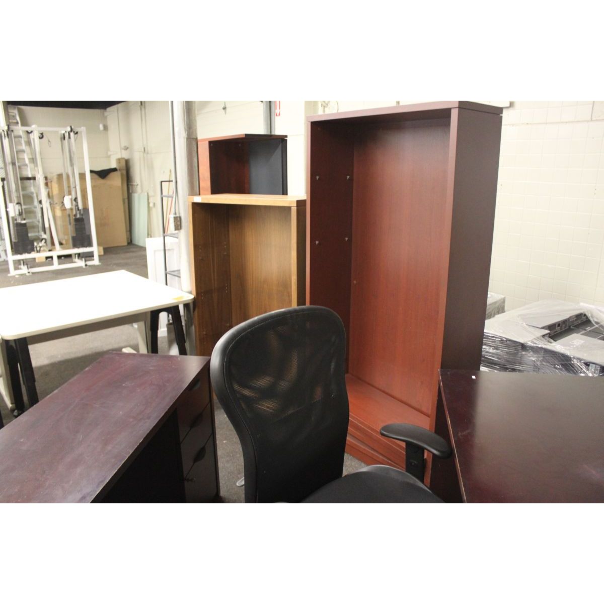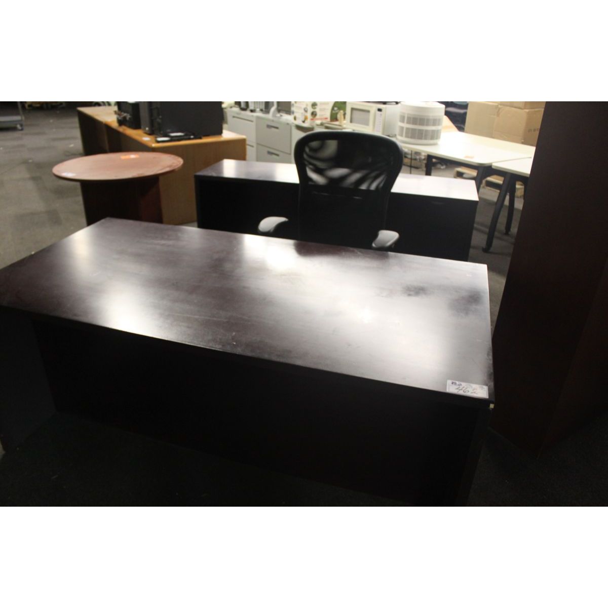 MAHOGANY DESK & CREDENZA WITH CHAIR & 2 BOOKCASES
