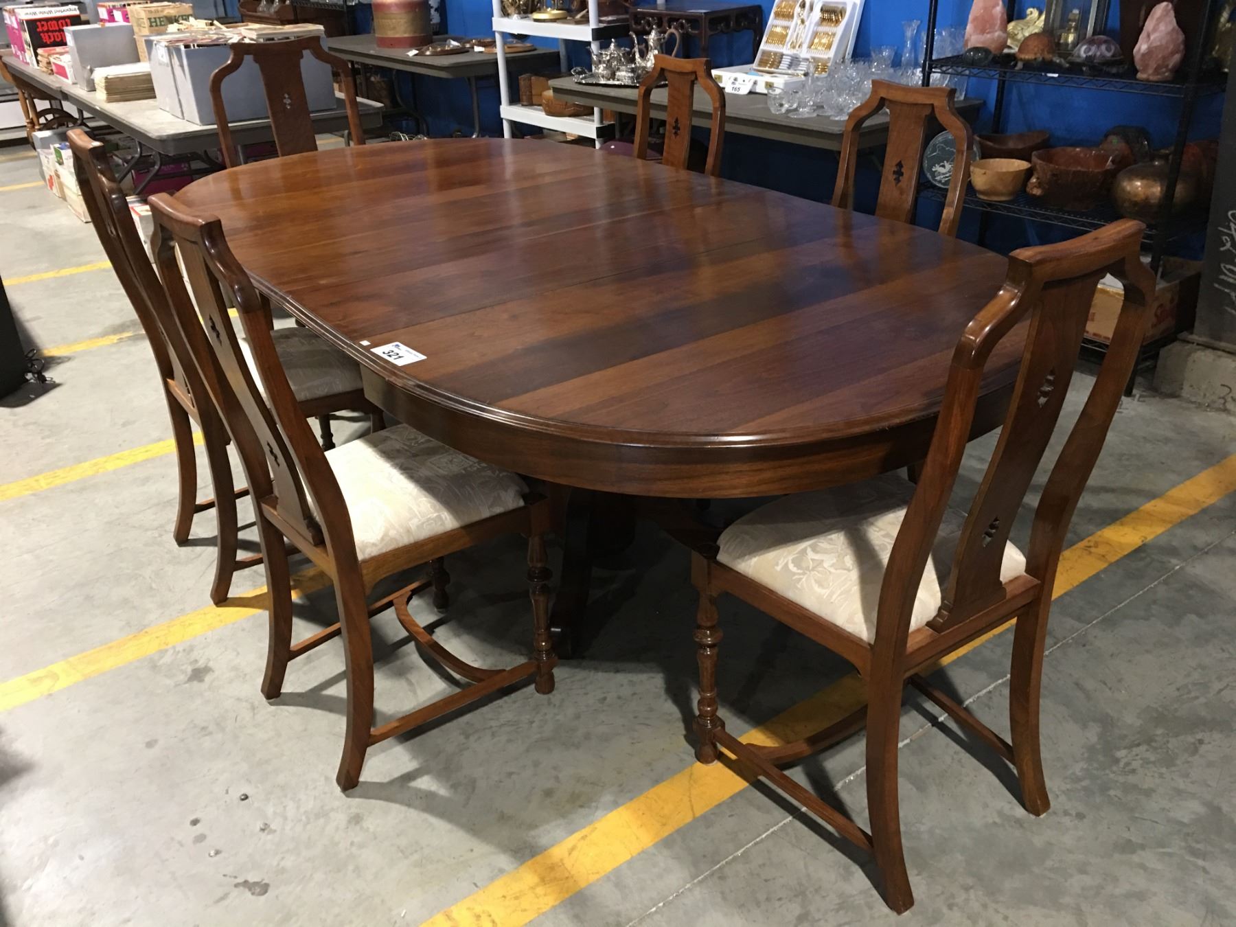 MAHOGANY DINING TABLE WITH 2 LEAVES & 6 CHAIRS