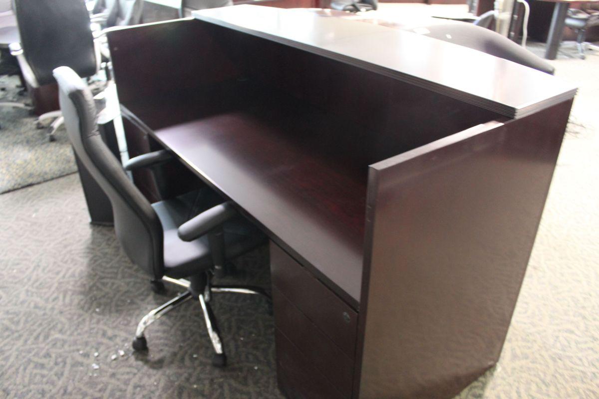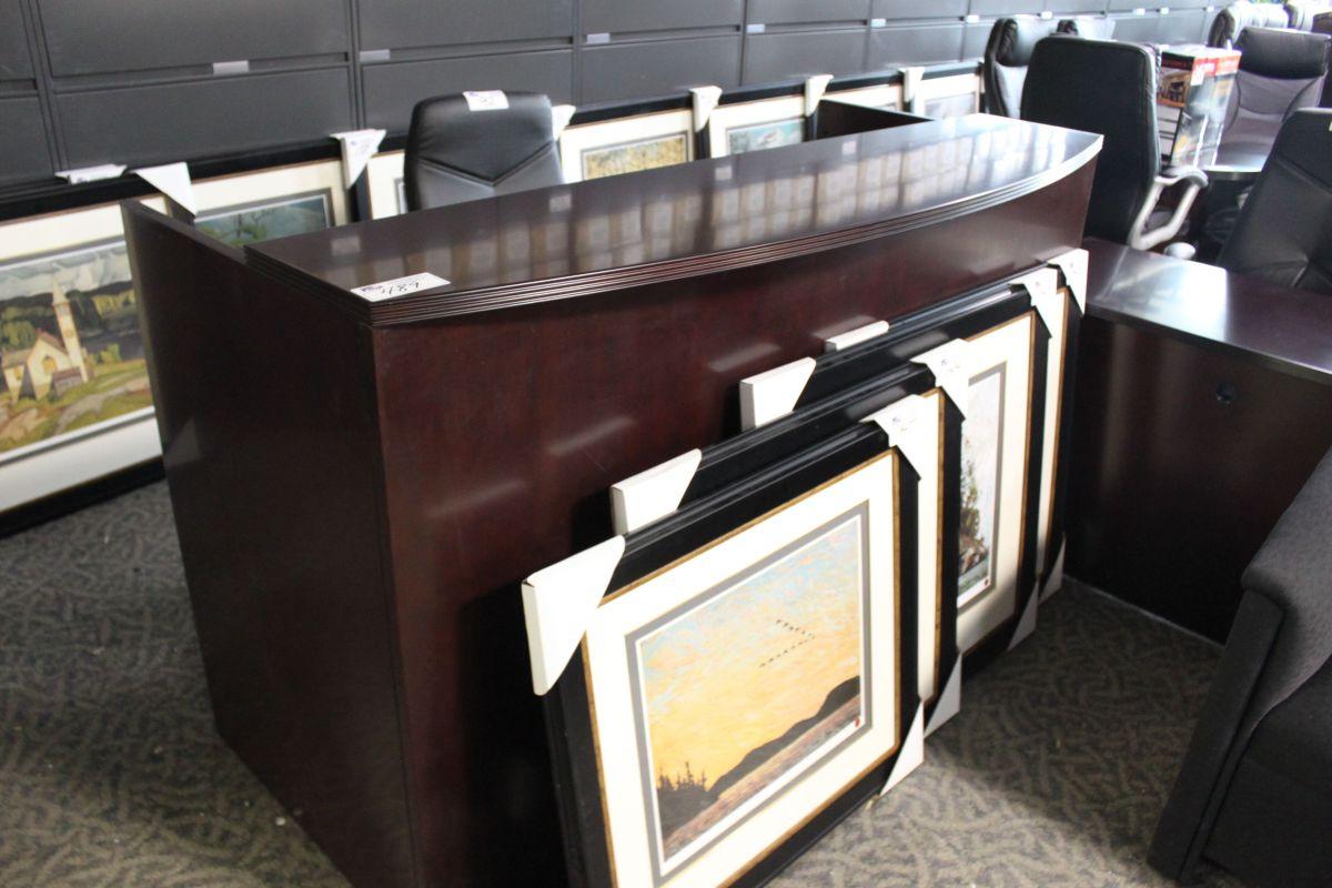 MAHOGANY DOUBLE PEDESTAL BOW FRONT GALLERY RECEPTION DESK