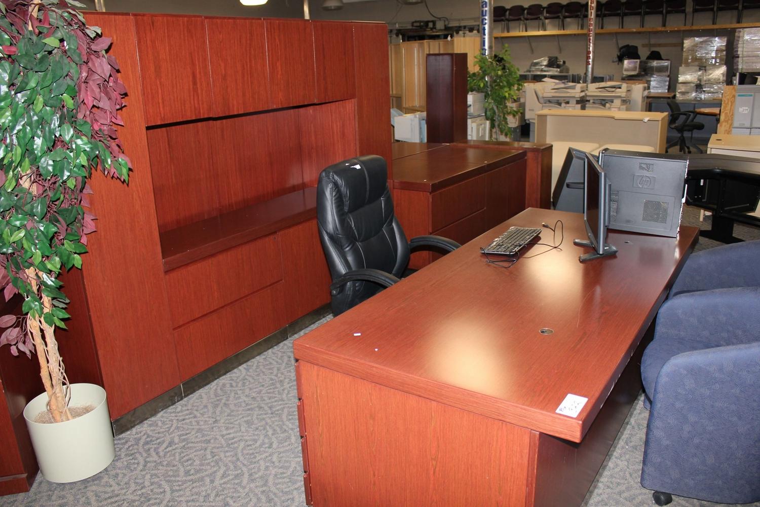 MAHOGANY EXECUTIVE DESK WITH MATCHING WALL UNIT