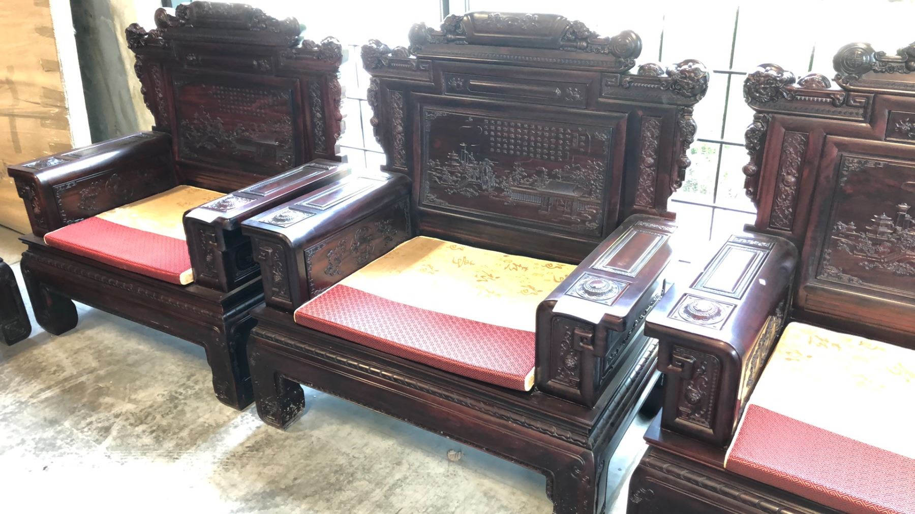 MAHOGANY FINISH ASIAN MOTIF ARMCHAIR 43  W