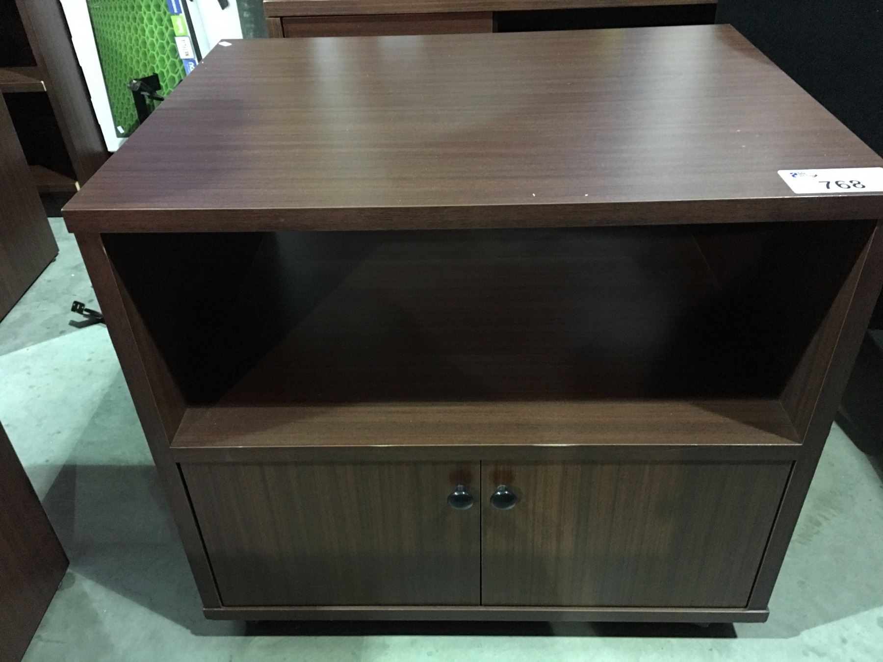 MAHOGANY FINISH OFFICE PRINTER STAND WITH BOTTOM CUPBOARD