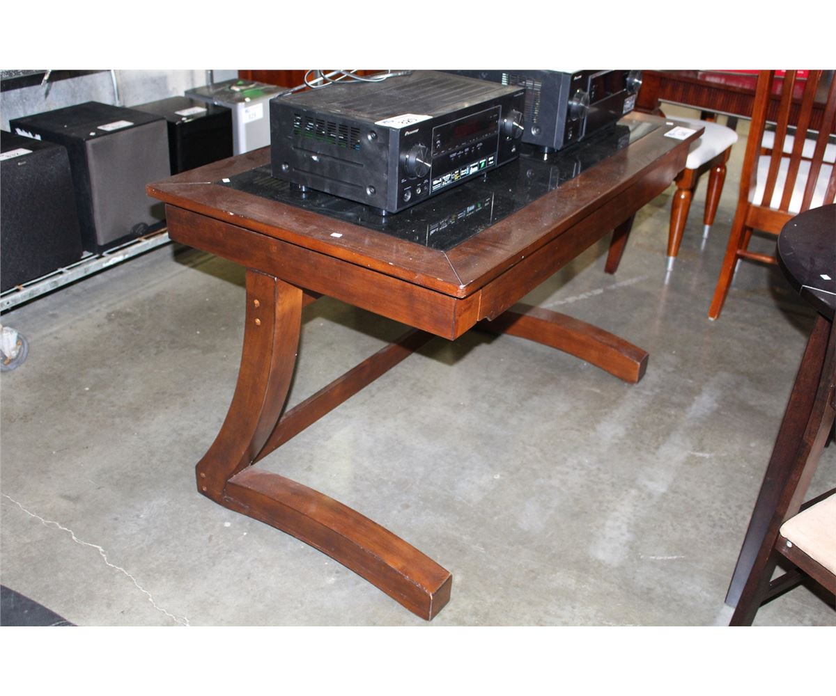 MAHOGANY FINISH SMOKE GLASS TOP SINGLE DRAWER DESK