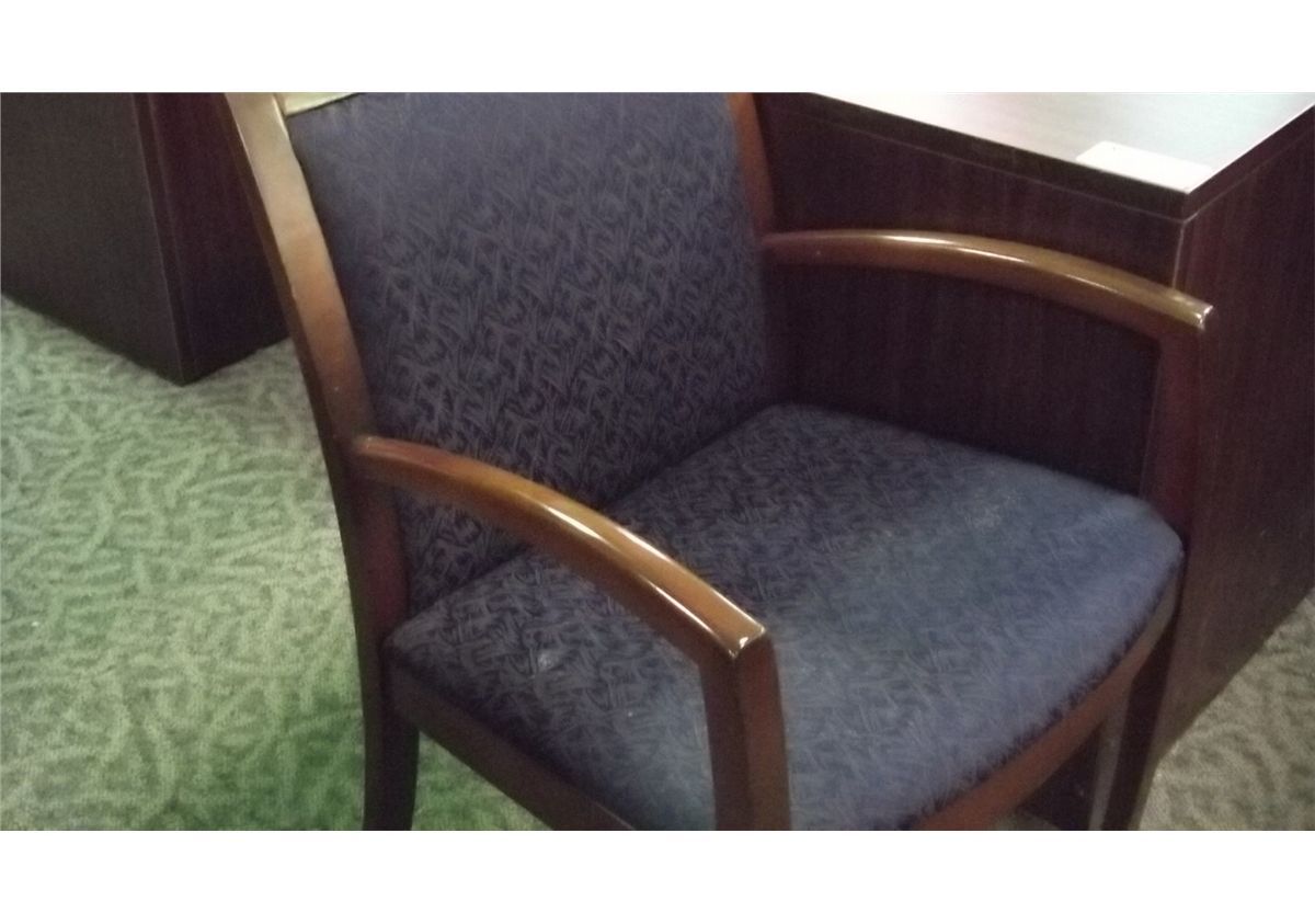 MAHOGANY FRAME BLUE CLIENT CHAIR