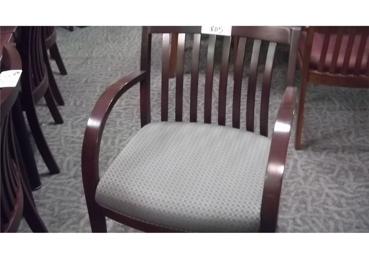 MAHOGANY FRAME SLAT-BACK GREEN CLIENT CHAIR