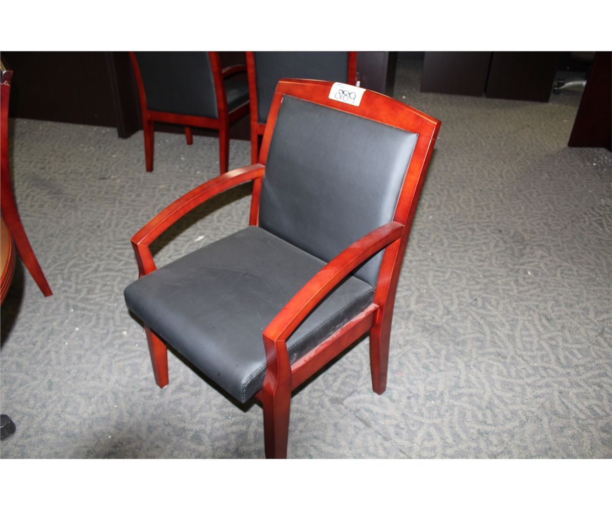MAHOGANY FRAMED BLACK CLIENT CHAIR
