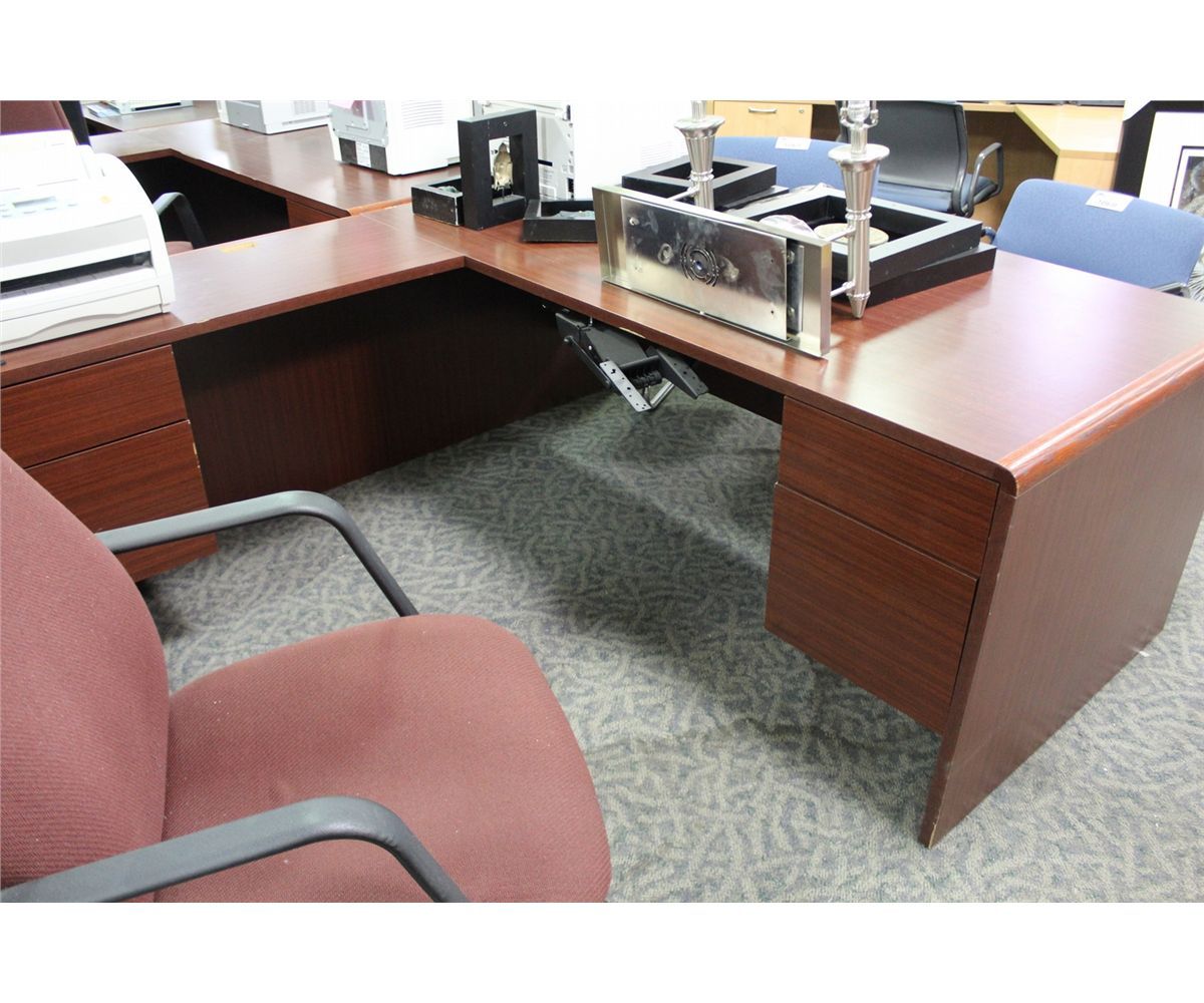 MAHOGANY L-SHAPE EXECUTIVE DESK