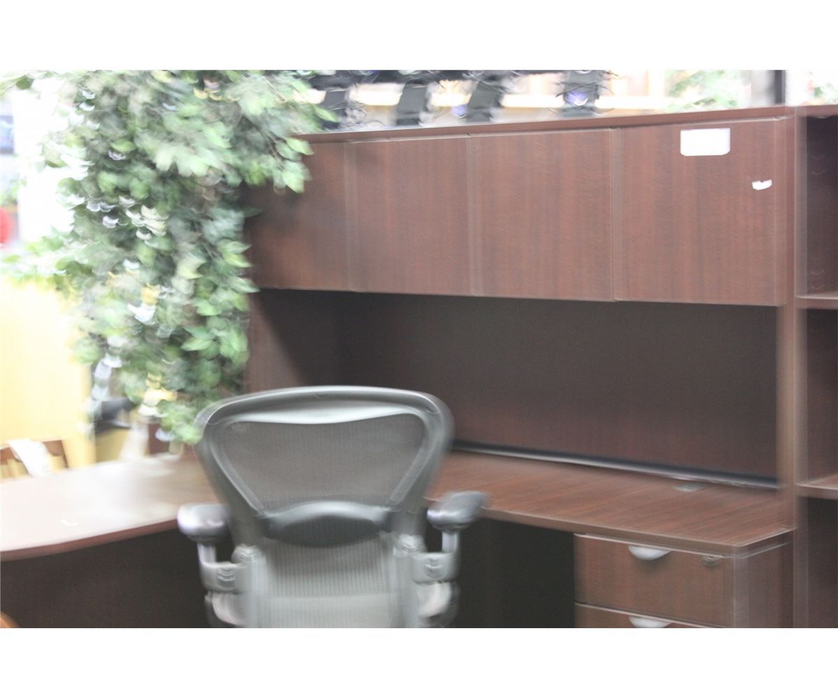 MAHOGANY P-TOP EXECUTIVE DESK WITH RIGHT HAND RETURN