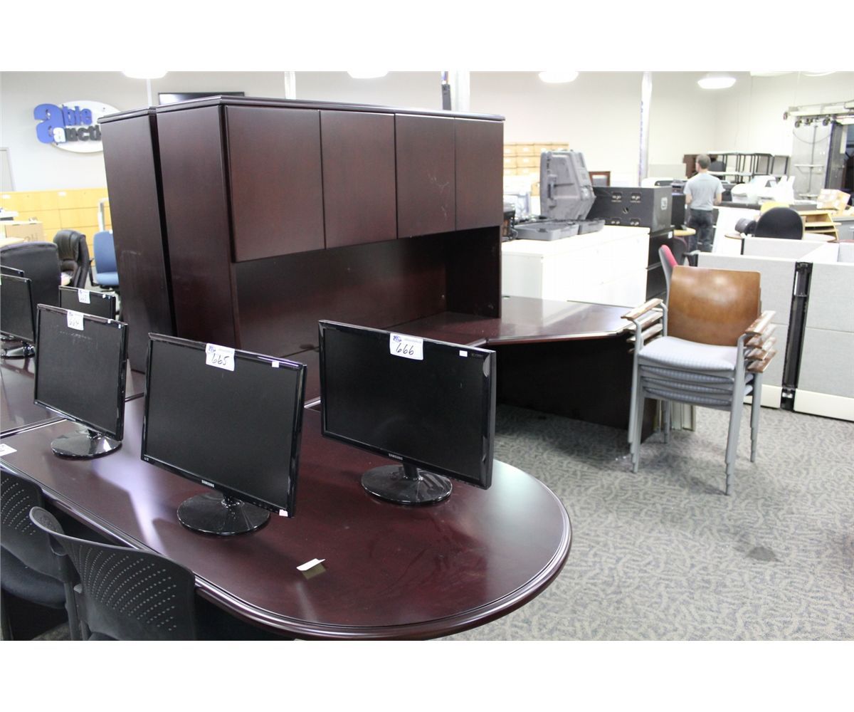 MAHOGANY P-TOP L-SHAPE EXECUTIVE DESK WITH HUTCH
