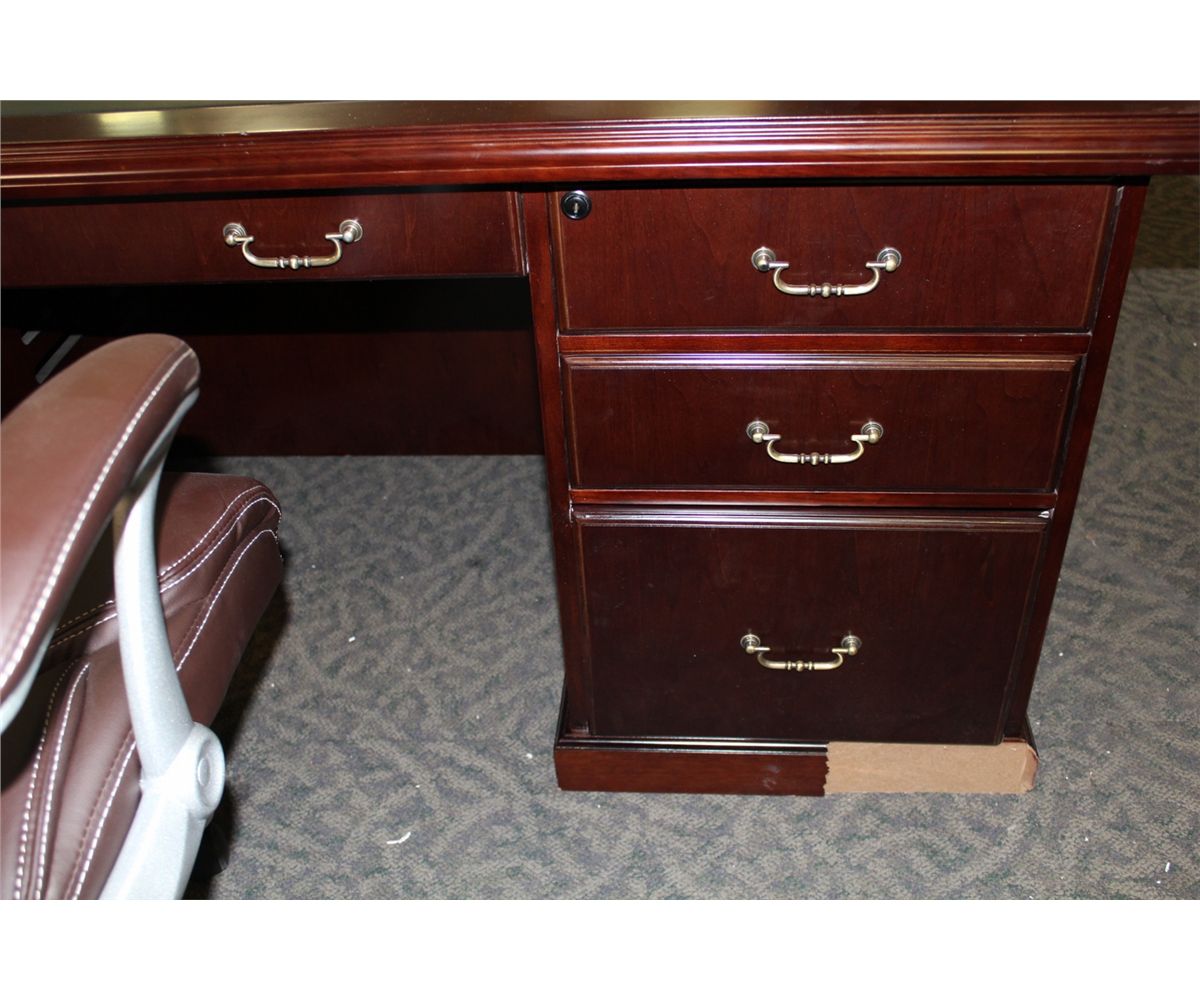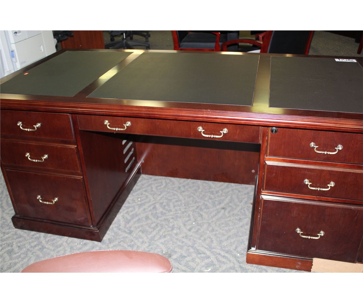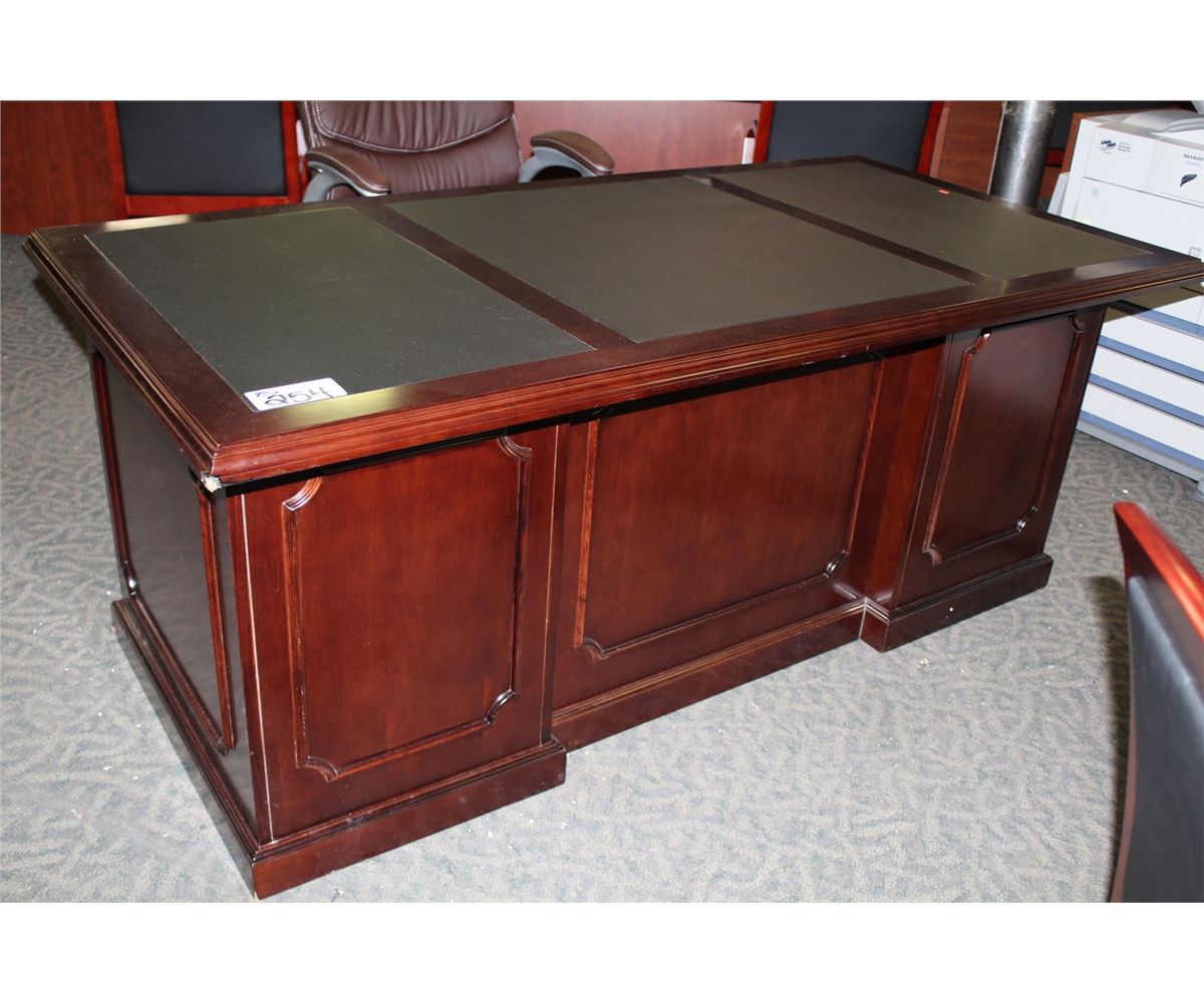 MAHOGANY TRADITIONAL INLAY TOP EXECUTIVE DESK (SOME DAMAGE)