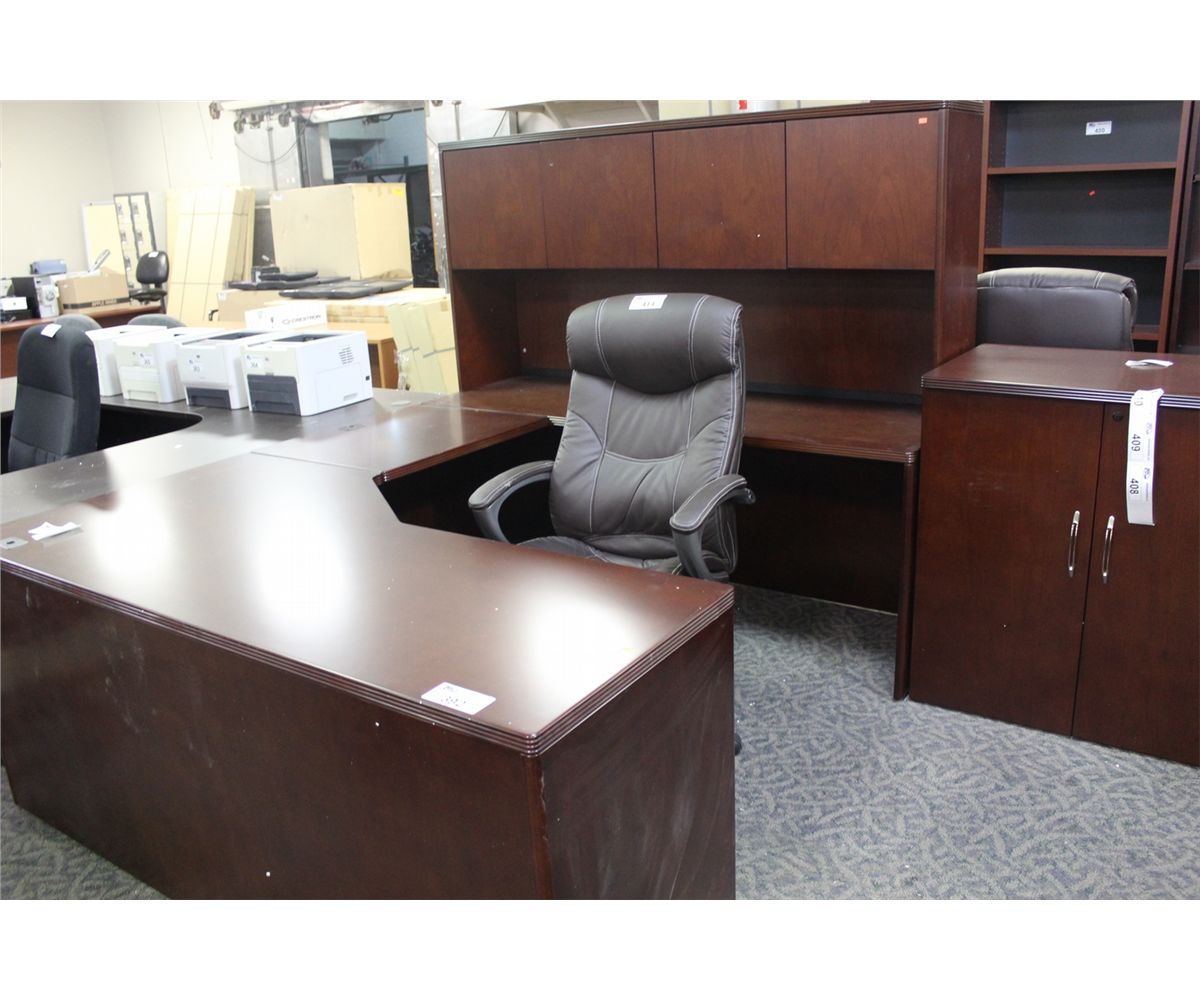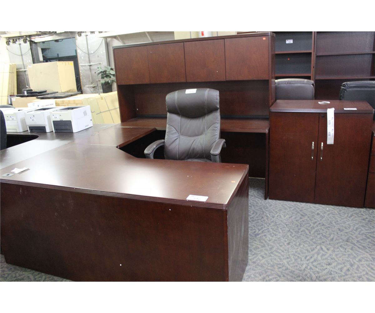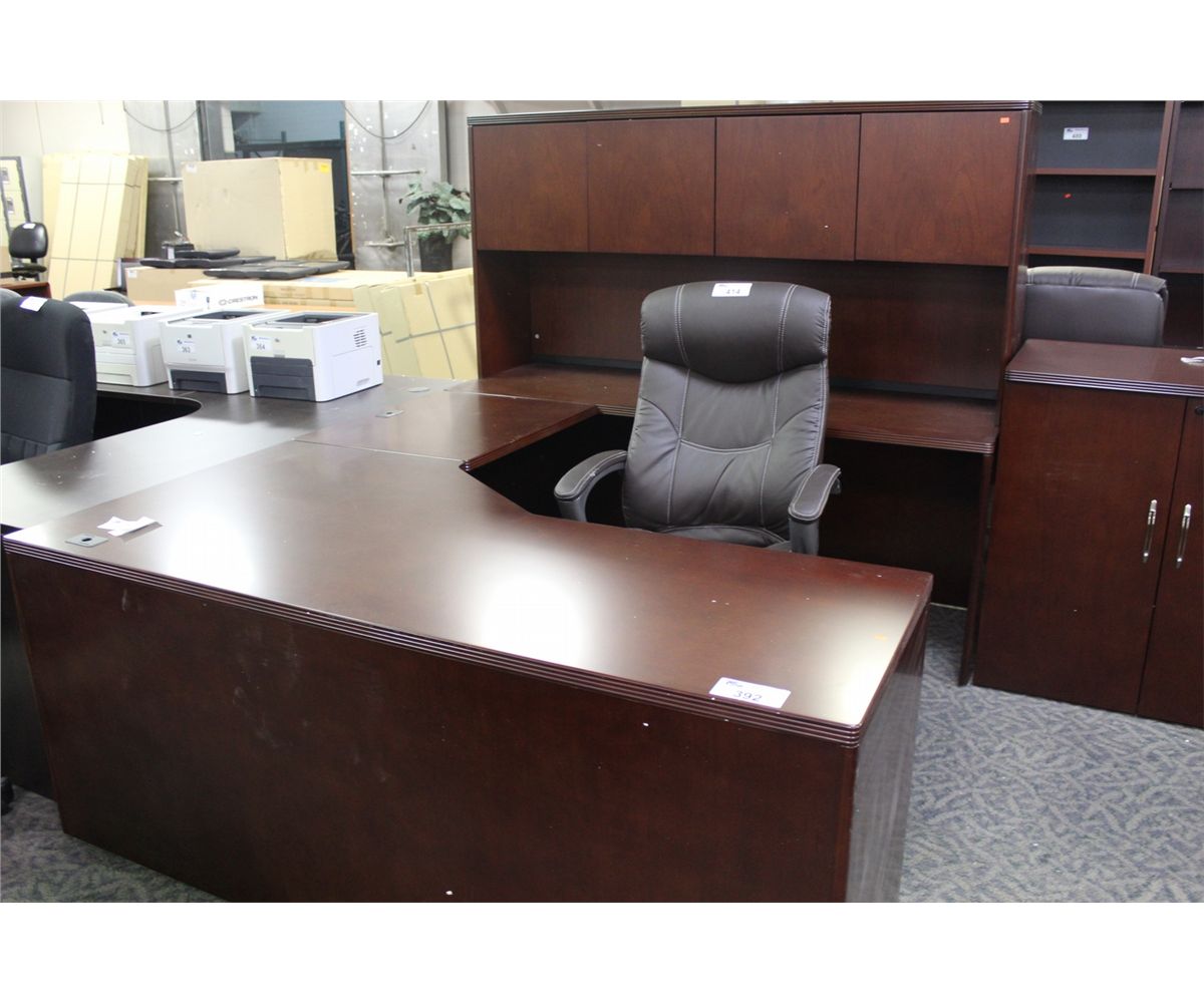 MAHOGANY U-SHAPE EXECUTIVE DESK C/W HUTCH