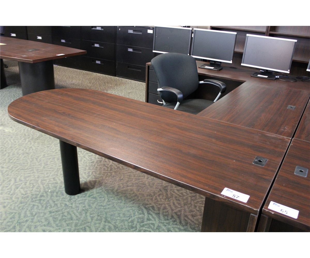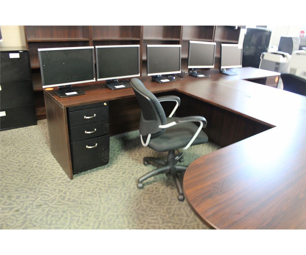 MAHOGANY U-SHAPE EXECUTIVE DESK LH W/ 3 DRAWER PEDESTAL