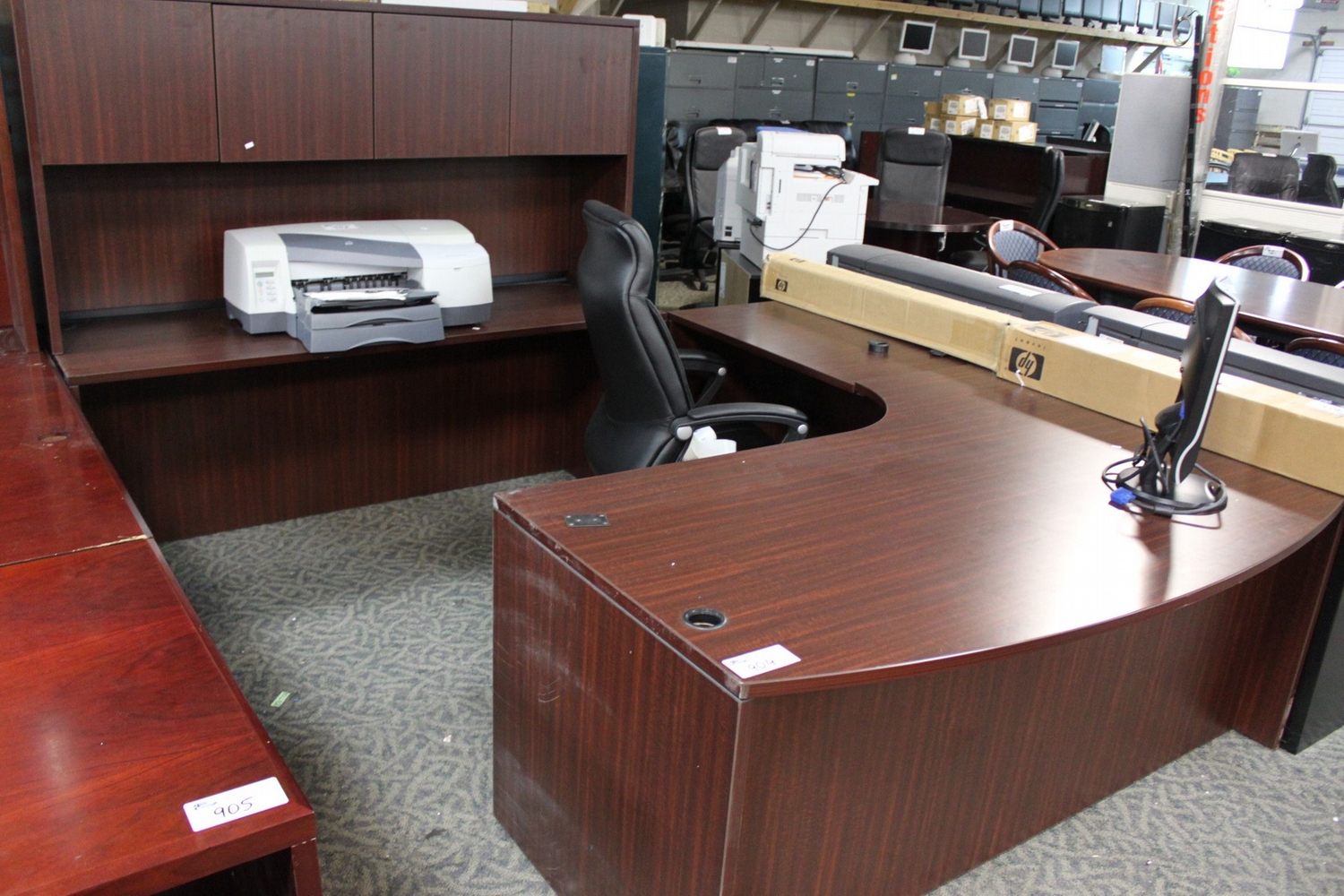 MAHOGANY U-SHAPE EXECUTIVE DESK WITH HUTCH
