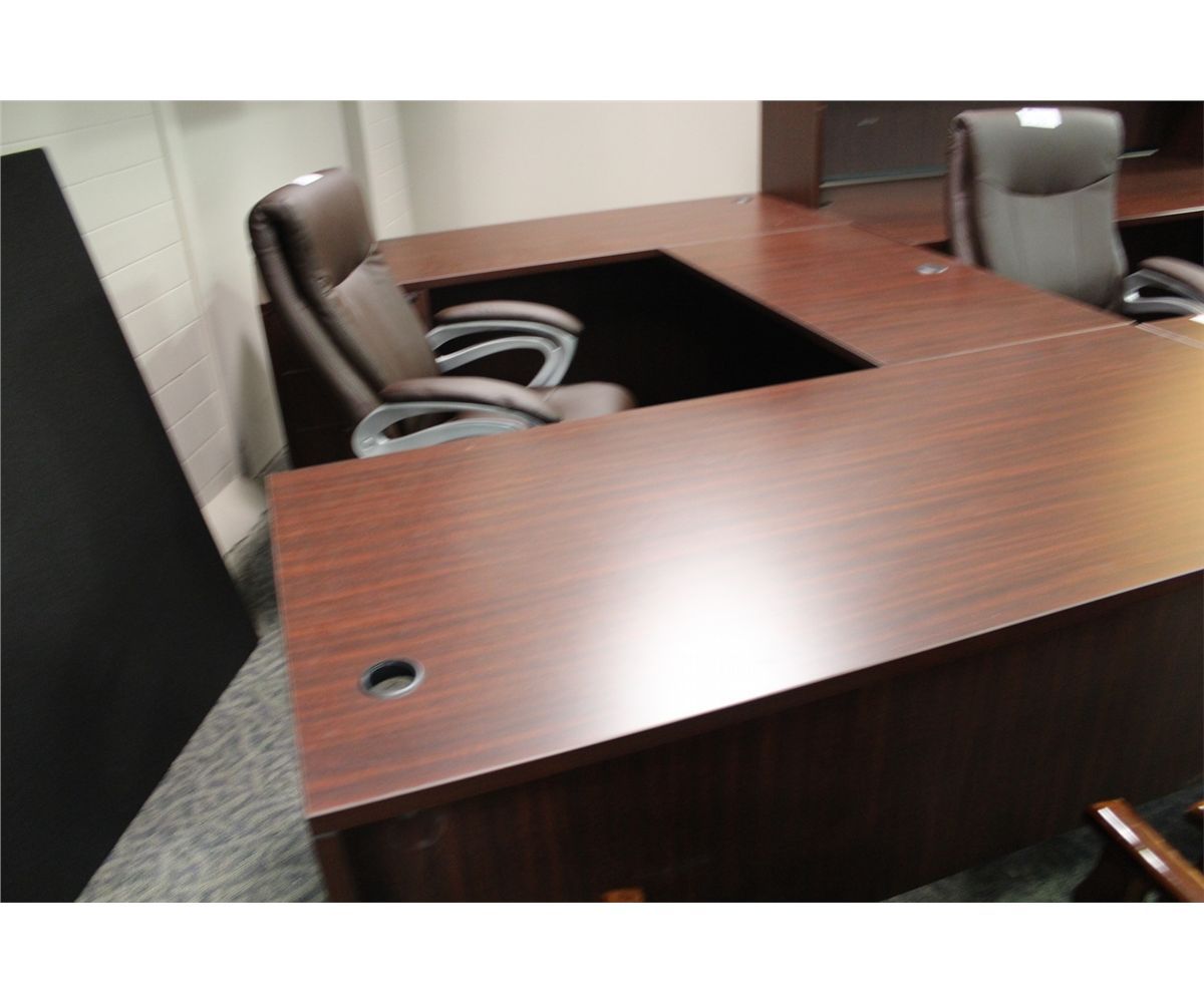 MAHOGANY U-SHAPE REVERSABLE EXECUTIVE DESK SUITE