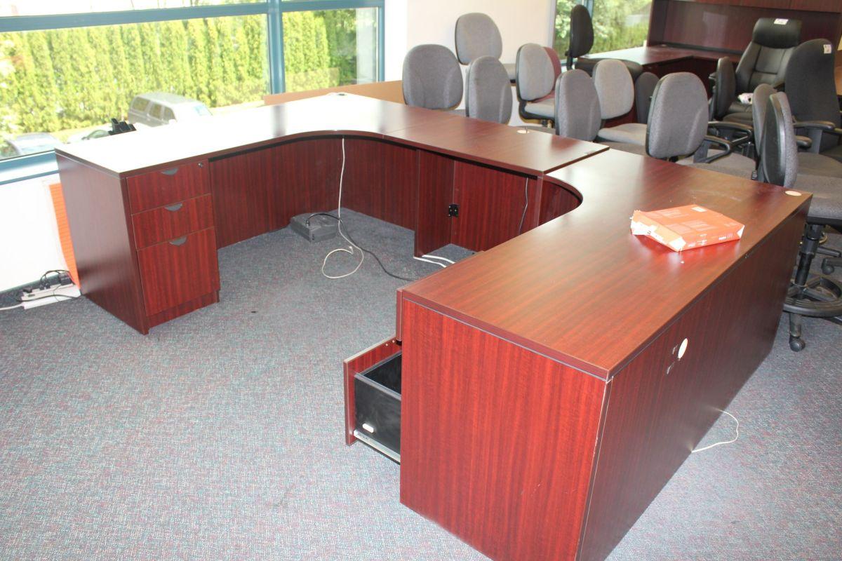 MAHOGANY U-SHAPED EXECUTIVE DESK WITH HUTCH