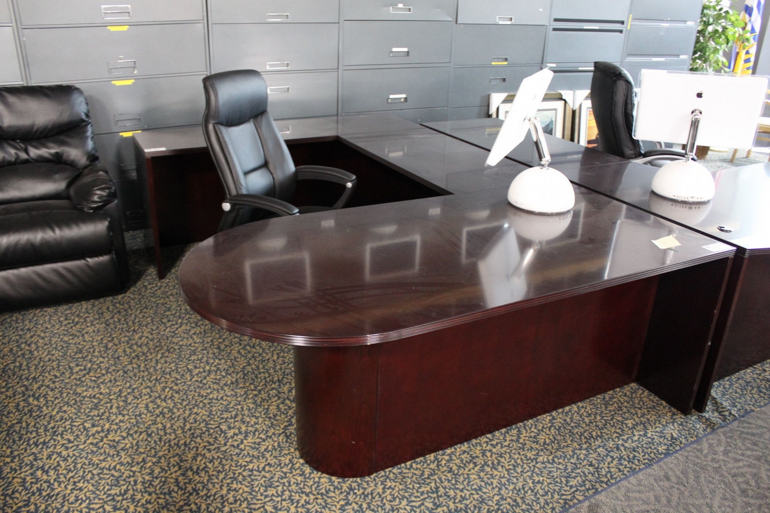 MAHOGANY U-SHAPED EXECUTIVE DESK