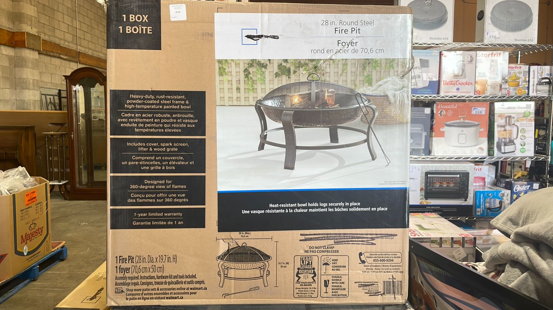 MAINSTAYS 28" ROUND STEEL FIRE PIT