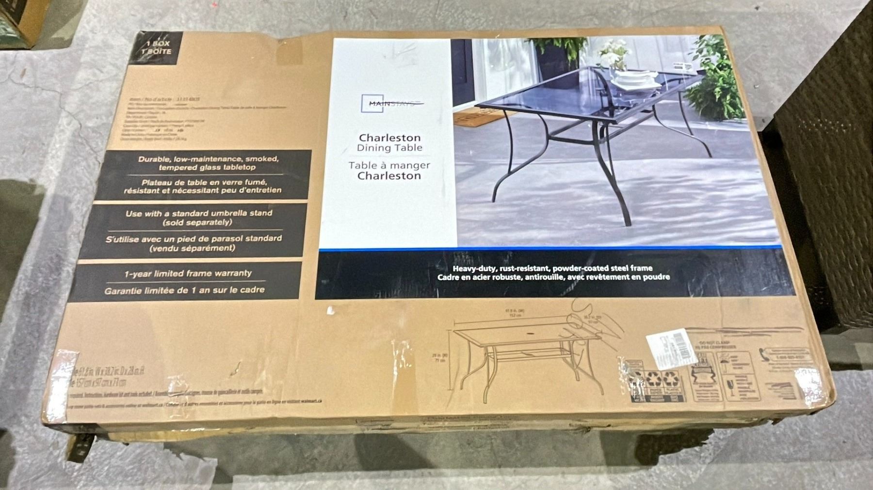 MAINSTAYS CHARLESTON DINING TABLE (MAY BE MISSING PARTS & PIECES)