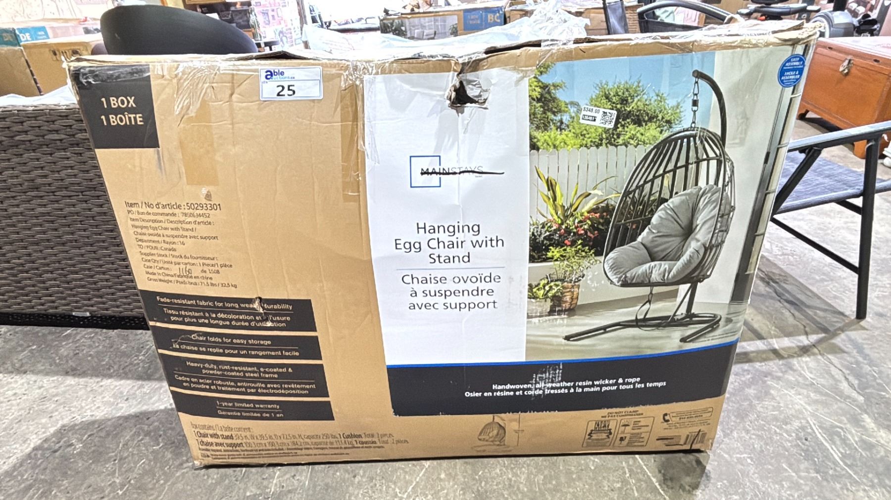 MAINSTAYS HANGING EGG CHAIR WITH STAND (MAY BE MISSING SOME HARDWARE)