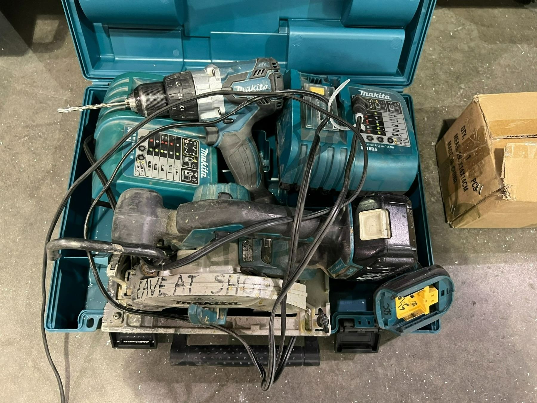 MAKITA 18V LI-ION BATTERY INCLUDES 3/8" DRILL, 1/2" HAMMER DRILL, 6 1/2" SKILL SAW & 1 3AH BATTERY