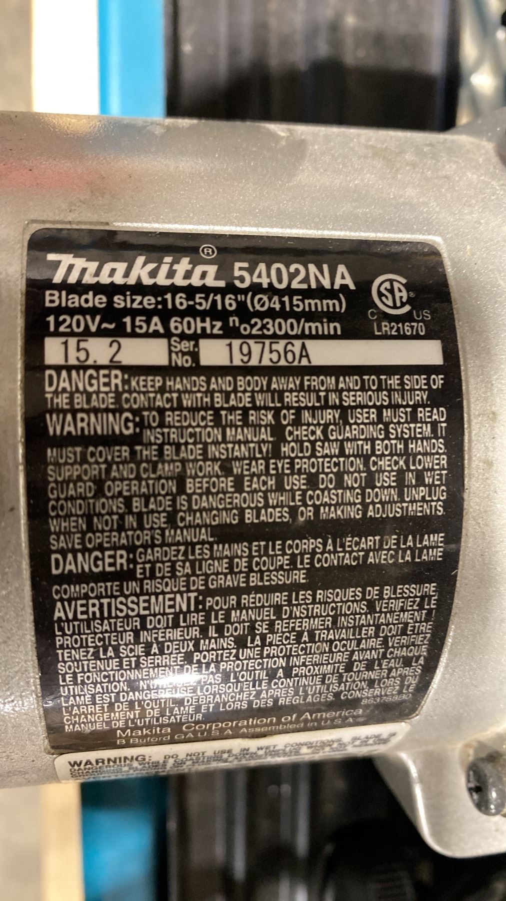 MAKITA 5402NA 16-5/16" ELECTRIC INDUSTRIAL LARGE WET SAW WITH PLASTIC BASIN STAND