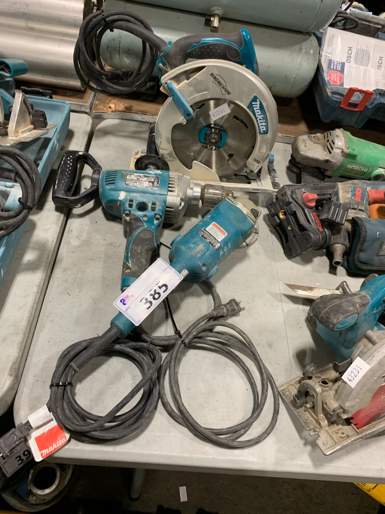 MAKITA DS4011 1/2" ELECTRIC STEEL DRILL, MAKITA 5008MGA ELECTRIC CIRCULAR SAW, & MAKITA GA5010 ELECTRIC ANGLE GRINDER