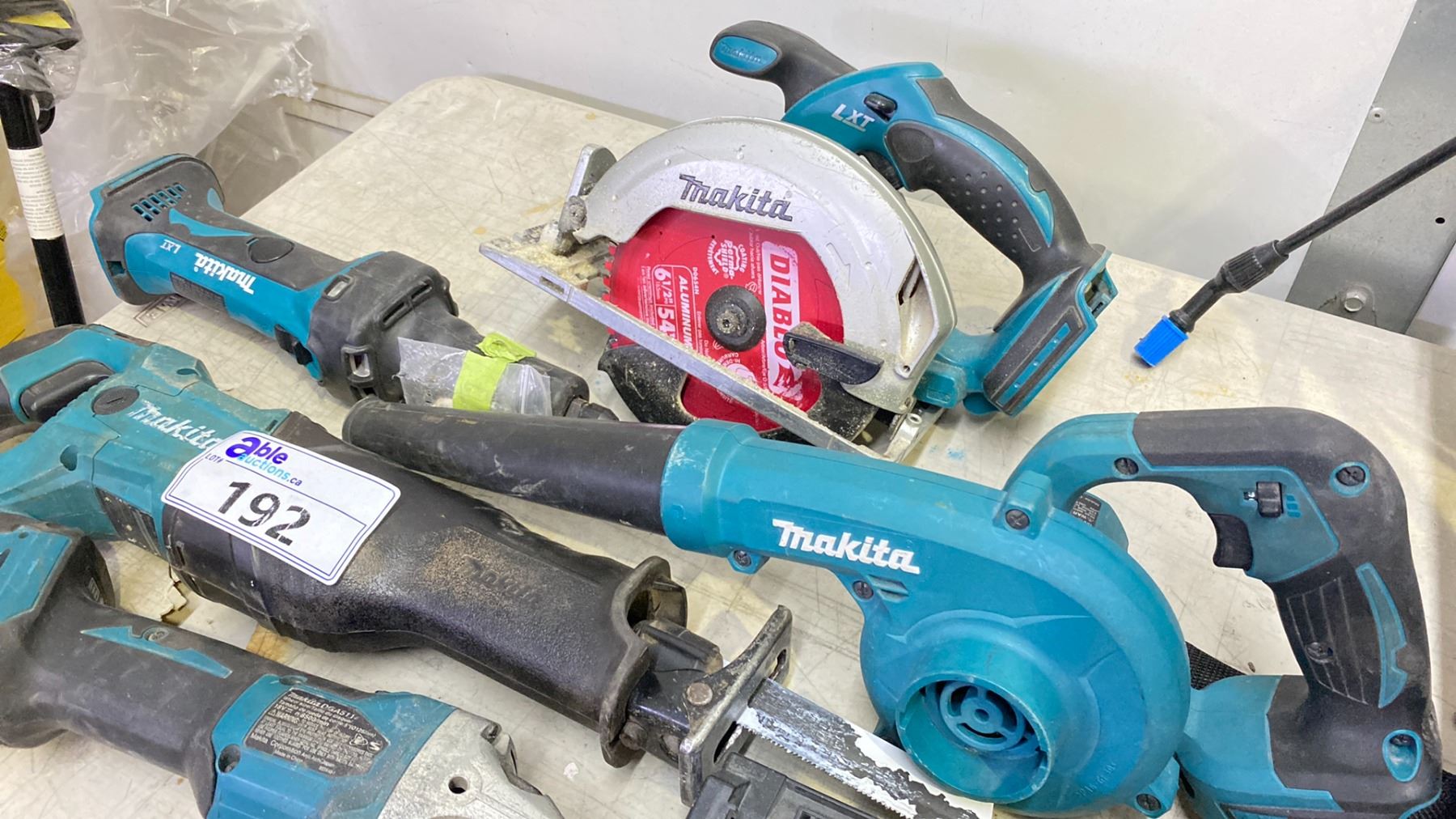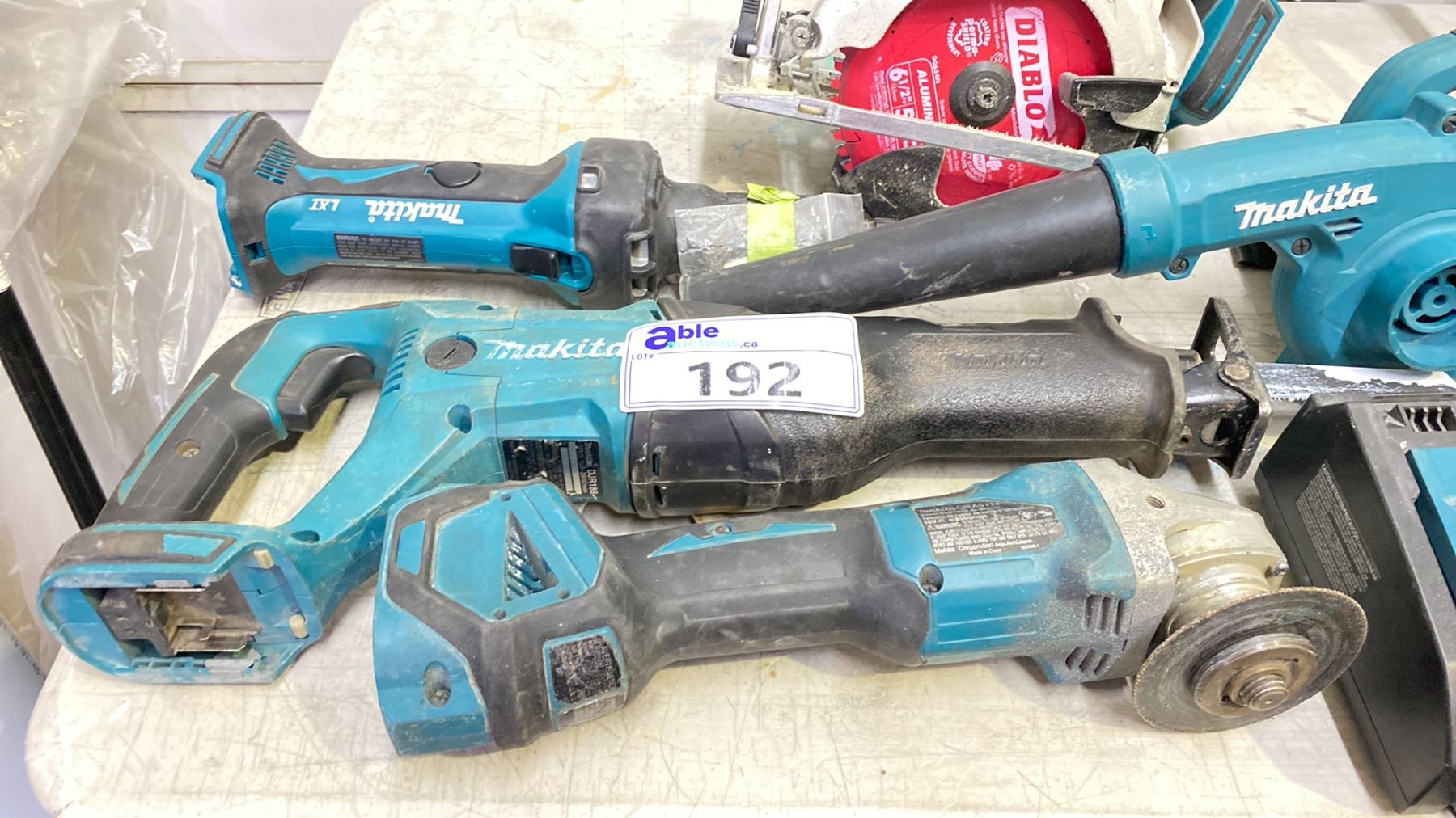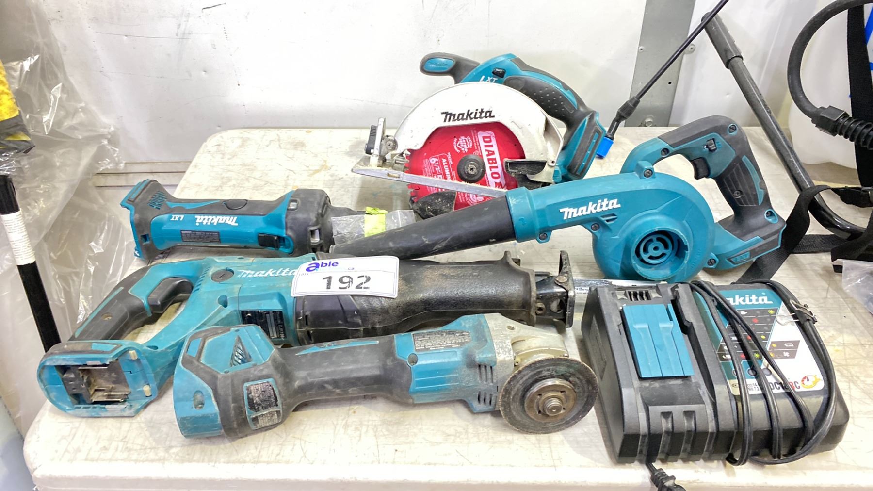 MAKITA GRINDER, BLOWER SAW AND MULTI TOOL WITH BATTERY CHARGER (NO BATTERIES)