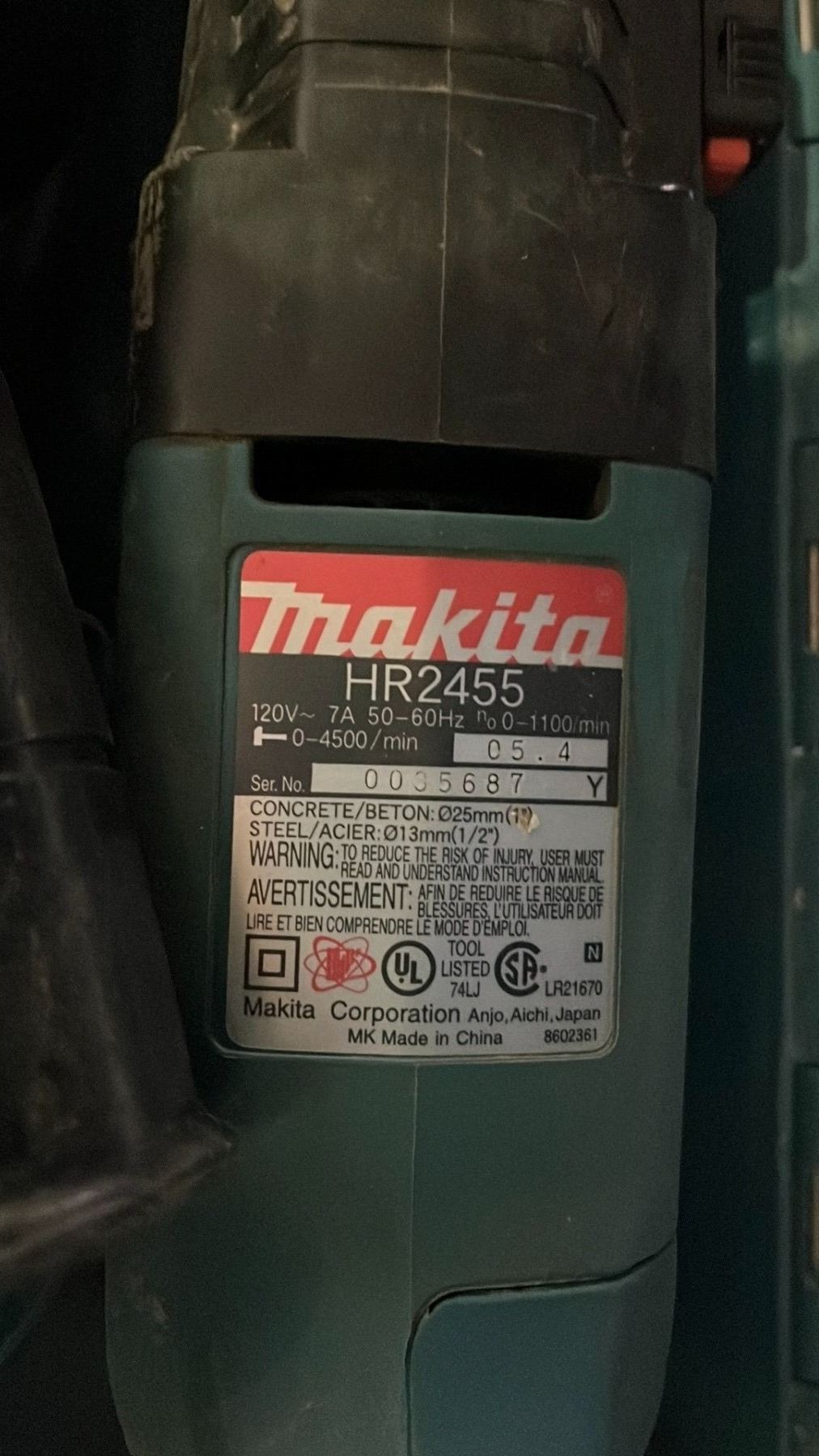 MAKITA HR2455 CONCRETE DRILL WITH CASE