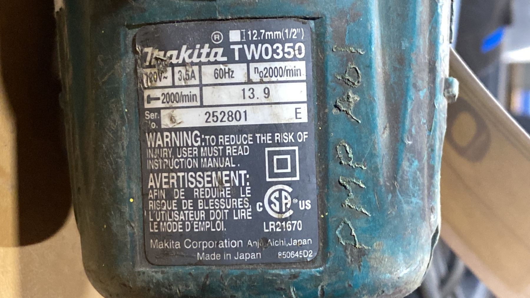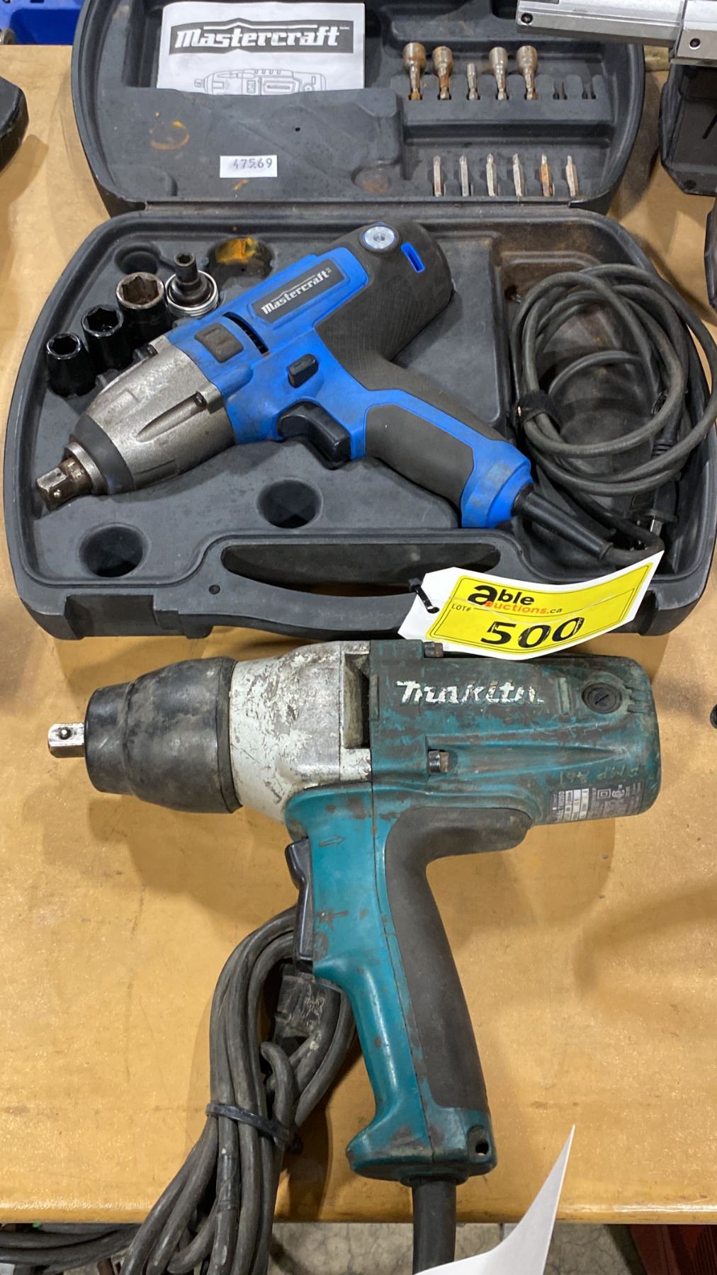 MAKITA TW0350 INDUSTRIAL ELECTRIC IMPACT WRENCH, & MASTERCRAFT ELECTRIC IMPACT WRENCH WITH SOCKETS