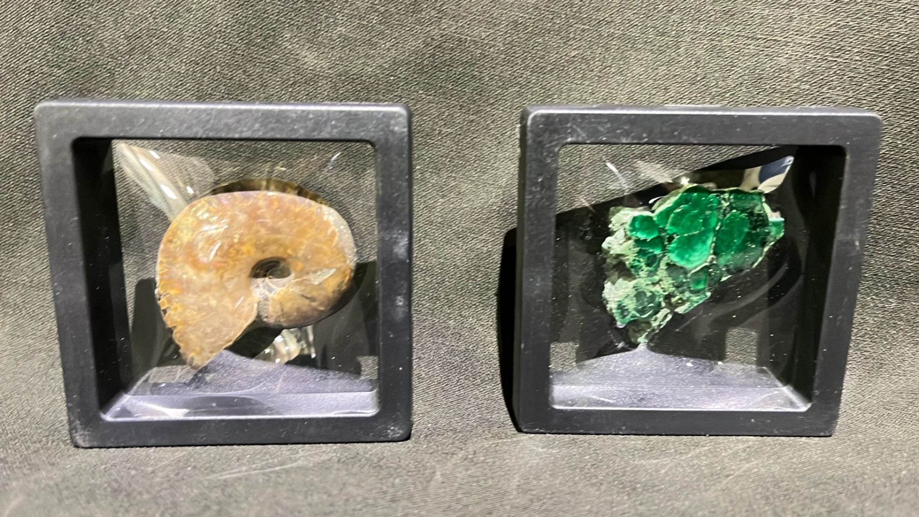 MALACHITE RETAIL $380, AND AMMONITE FOSSIL RETAIL $180