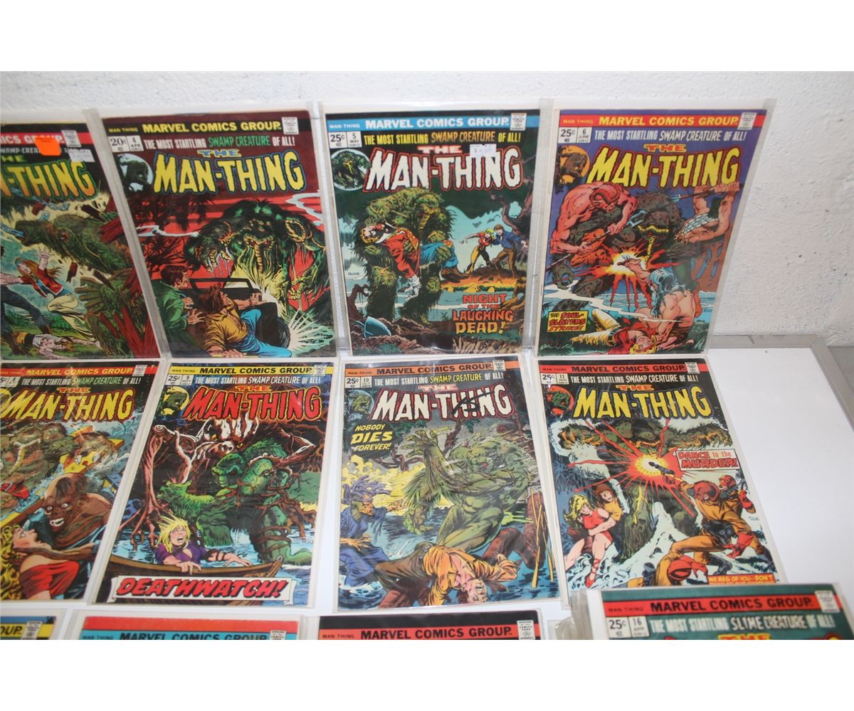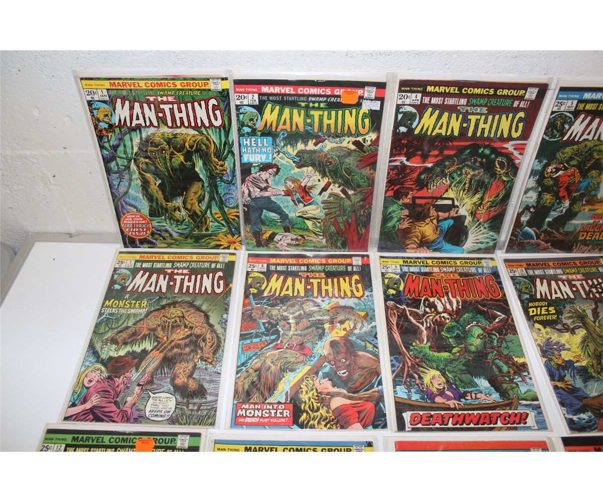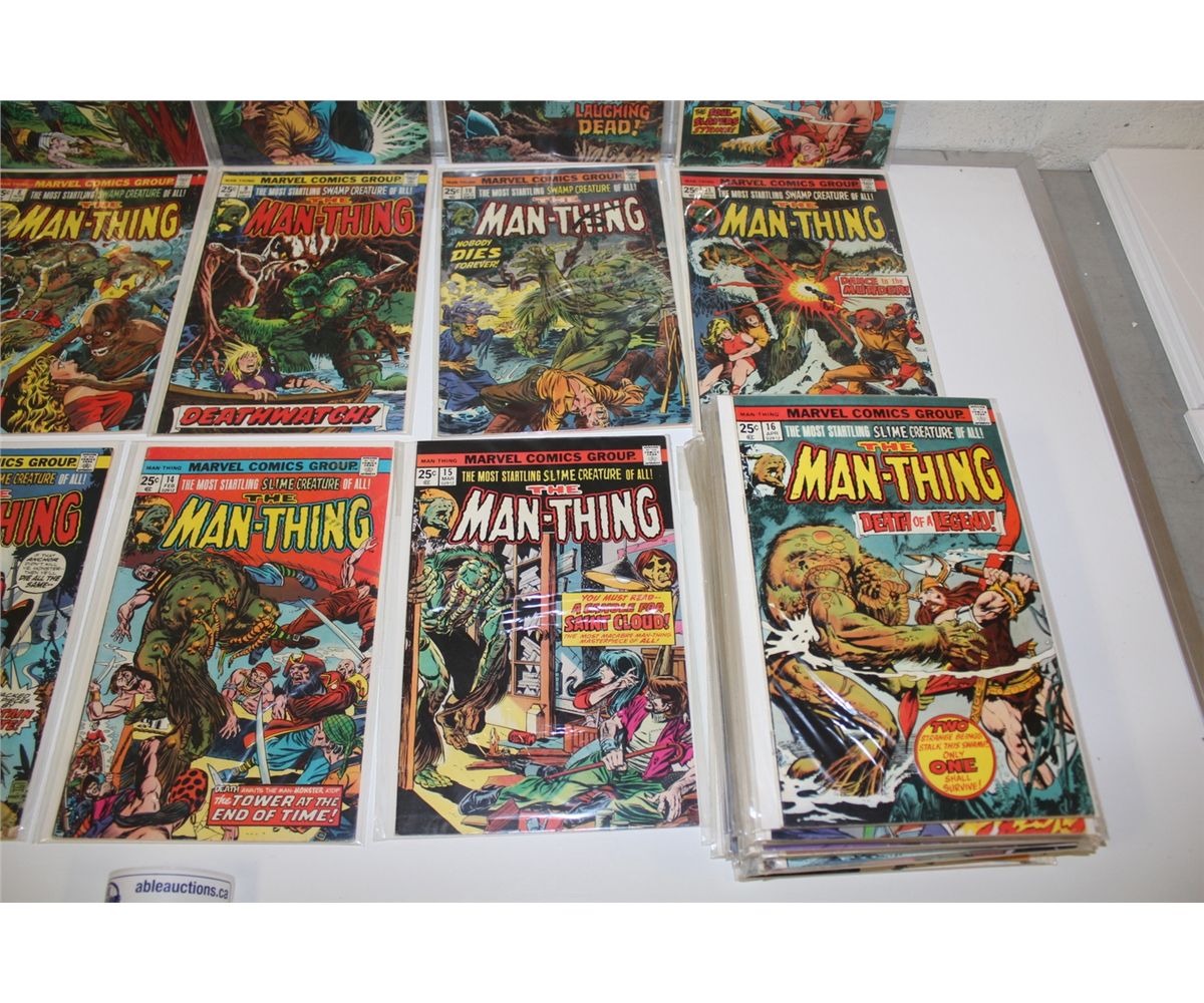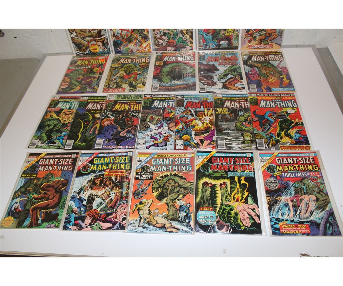 MAN THING #1-2, 4-22, VOL. 2 #1-10 & GIANT SIZE #1-5 NEAR COMPLETE SETS .MID GRADE AVERAGE. 36 BOOKS TOTAL