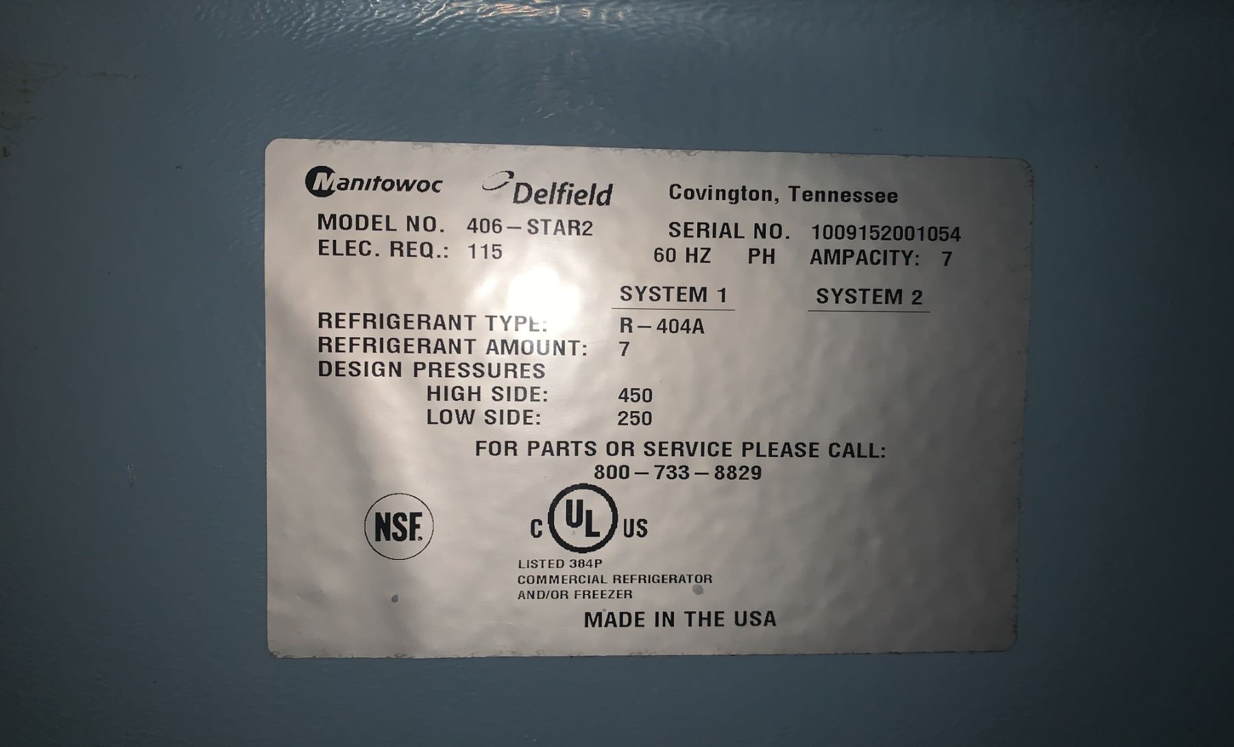 MANITOWOC 406-STAR2 STAINLESS STEEL SINGLE DOOR COMMERCIAL UNDERCOUNTER REFRIGERATOR