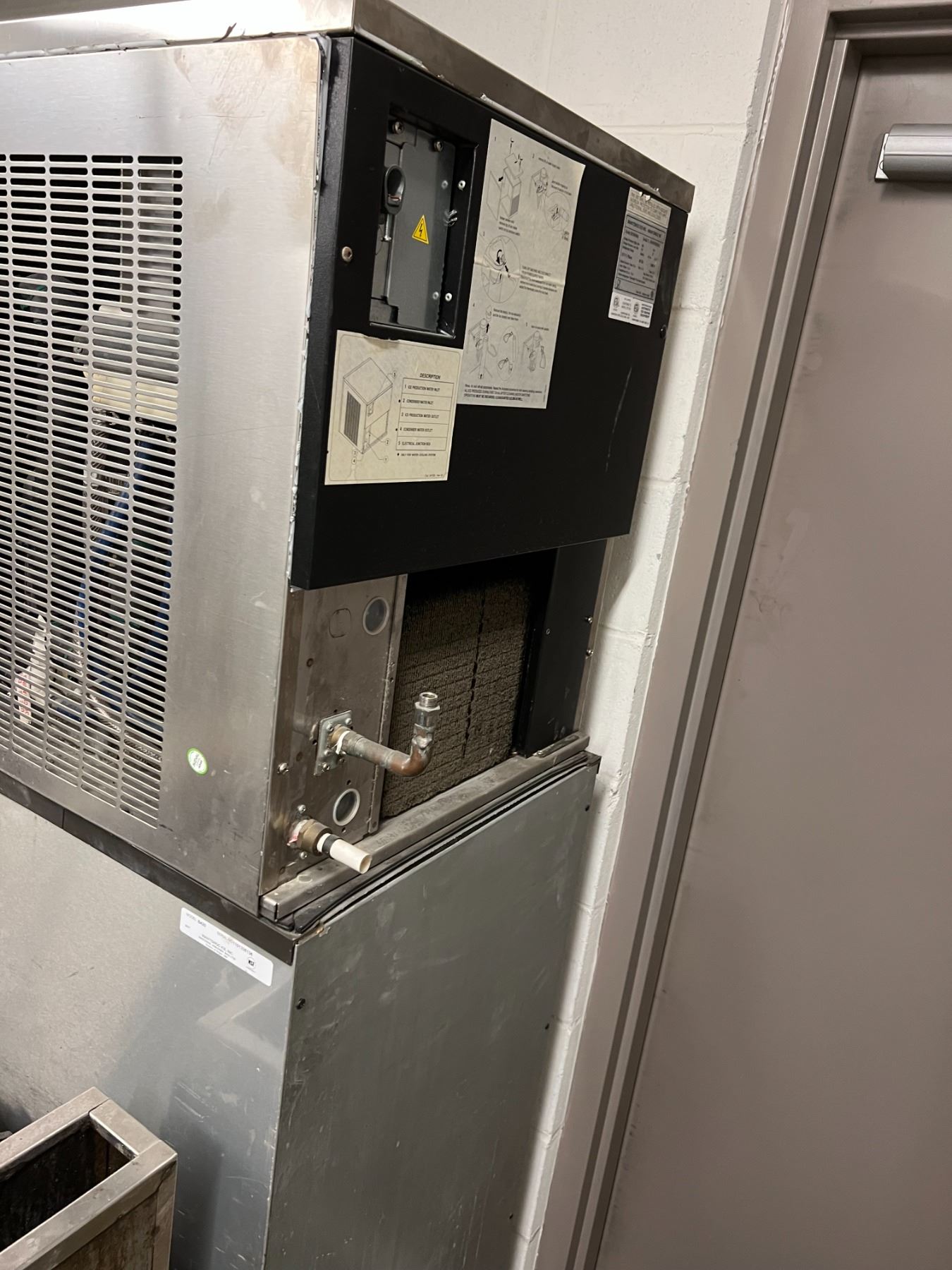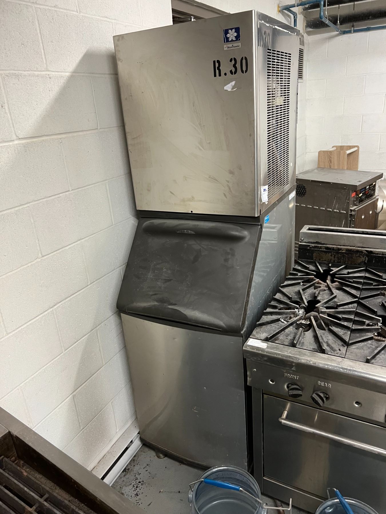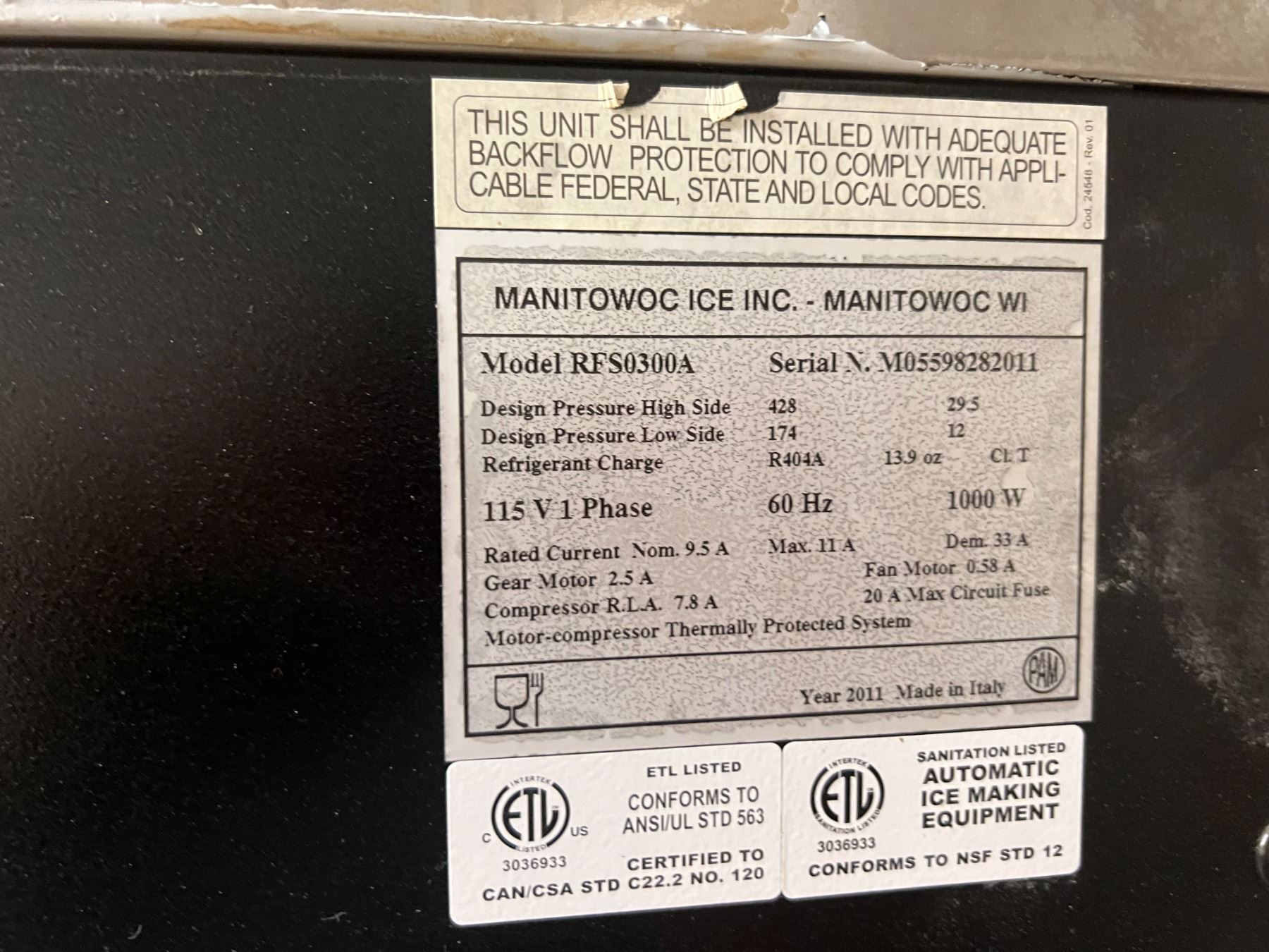 MANITOWOC COMMERCIAL ICE MAKER WITH 2 ICE PAILS. 22" WIDE. MODEL RFS0300A
