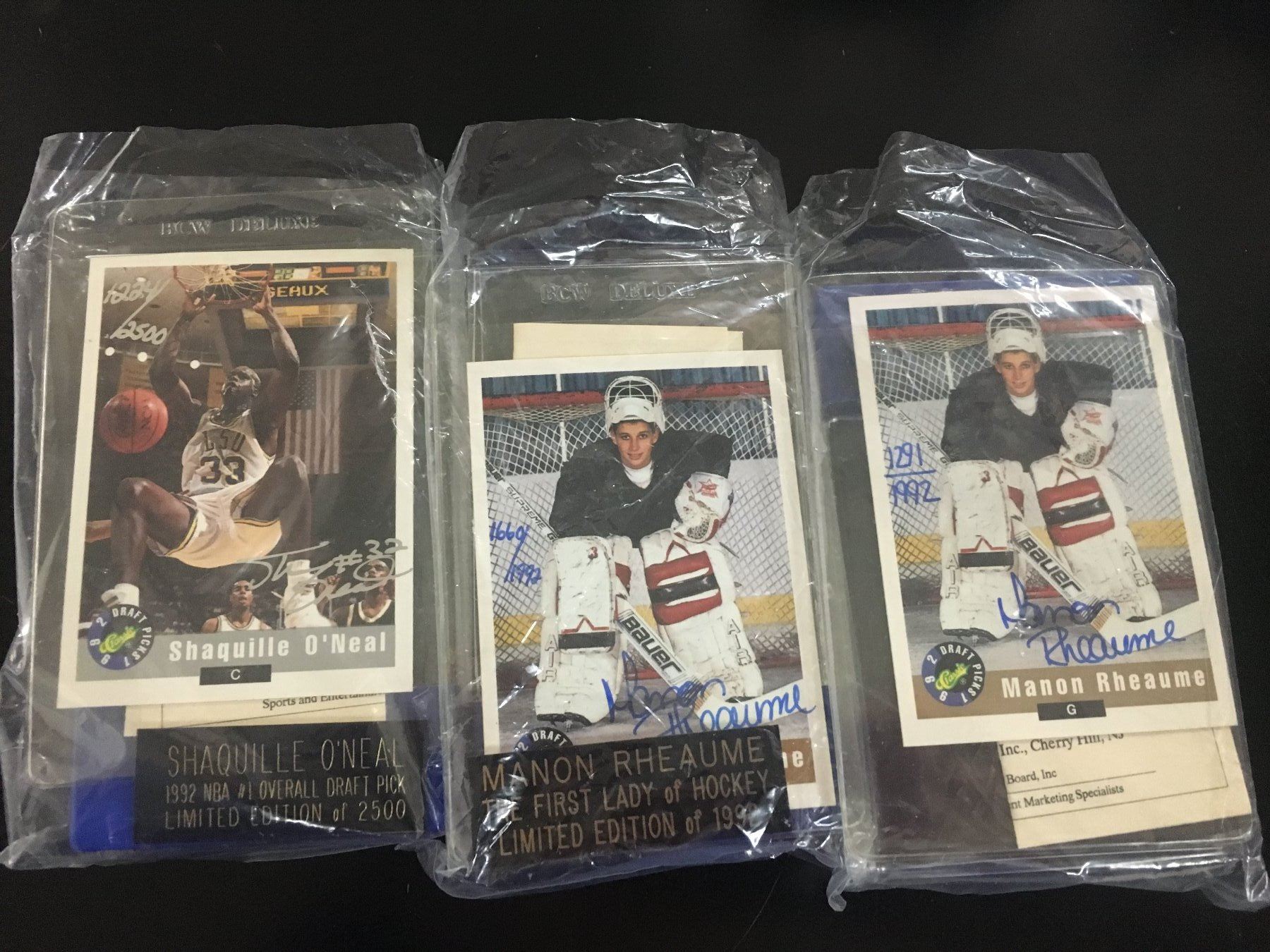 MANON RHEAUME LADY GOALIE CARD $20.00, SHAQUE O'NEAL-NO.1 DRAFT PICK CARD $50.00