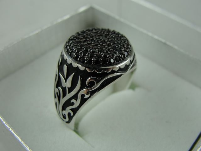 MANS STERLING SILVER RING SET WITH GENUINE BLACK TOPAZES