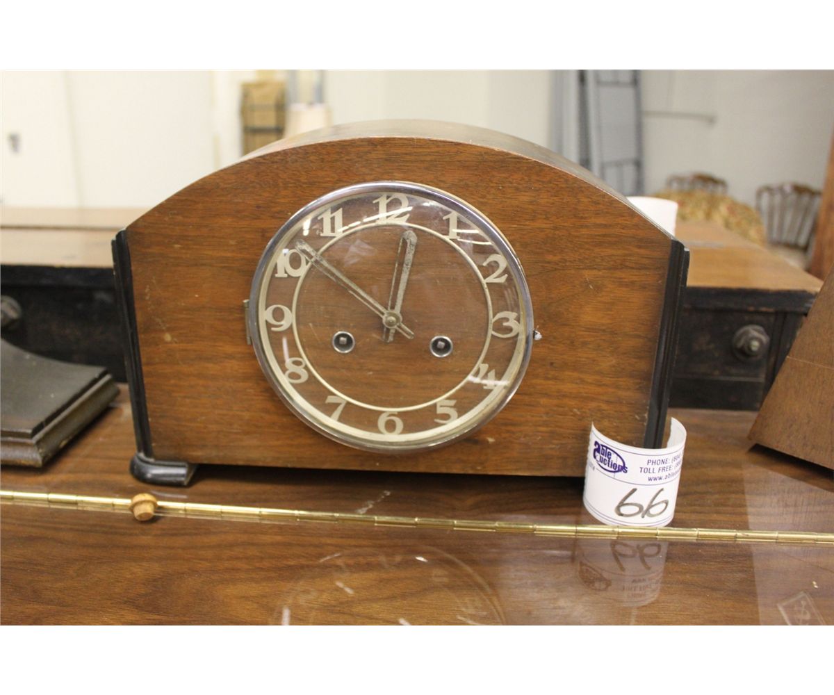 MANTEL CLOCK - EDWARDIAN STYLE WOOD WITH GOLD NUMBERS