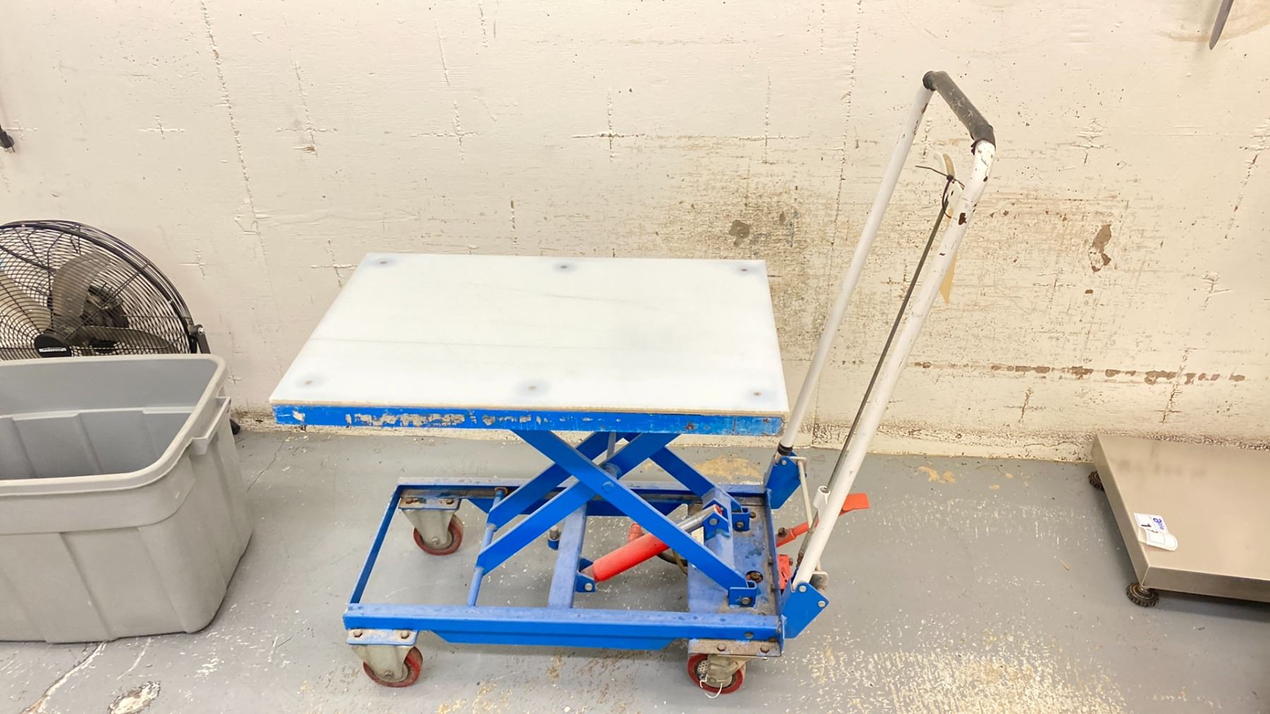 MANUAL LIFT TABLE ON WHEELS 150 KG CAPACITY MODEL BS15 LOCATED IN PRE-WEIGH ROOM