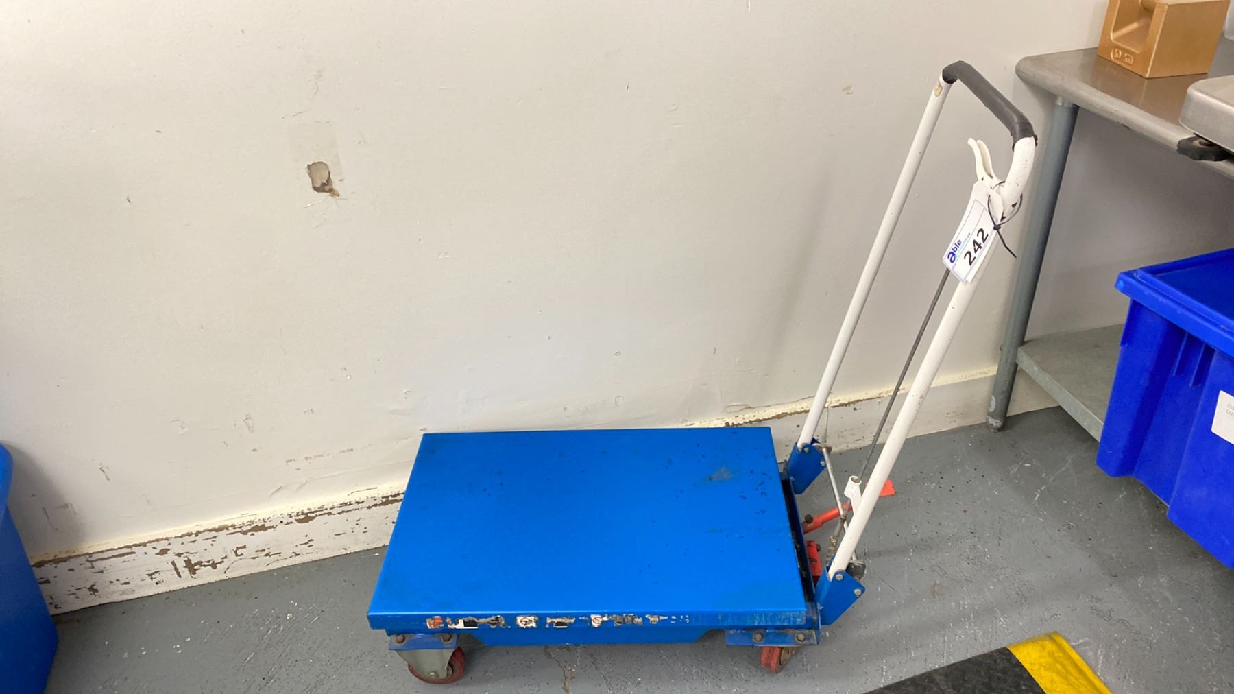 MANUAL LIFT TABLE ON WHEELS 150 KG CAPACITY MODEL BS15 LOCATED IN PRE-WEIGH ROOM