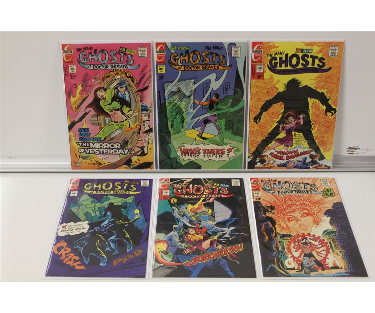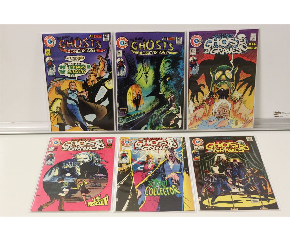 MANY GHOSTS OF DOCTOR GRAVES #37-48 *RARE IN HIGH GRADE *(1973-74. CHARLTON COMICS ARE NOTORIOUSLY IMPOSSIBLE TO FIND IN HIGH GRADE. THESE COPIES ARE IMMACULATE & THIS COULD EASILY BE THE NICEST RUN IN EXISTENCE.-2013 OVERSTREET TOP END 9.2 GUIDE VALUE OF $216. THE MAJORITY OF THESE ARE HIGHER GRADE THAN 9.2 (9.4-9.8) BEAUTIFUL SPINES, RAZOR SHARP CORNERS, GLOSSY, DEEP COLOURS -THE NICEST CHARLTONS YOU'LL COME ACROSS.FEATURING GREAT STEVE DITRO ART.  'ABSOLUTE GEMS'