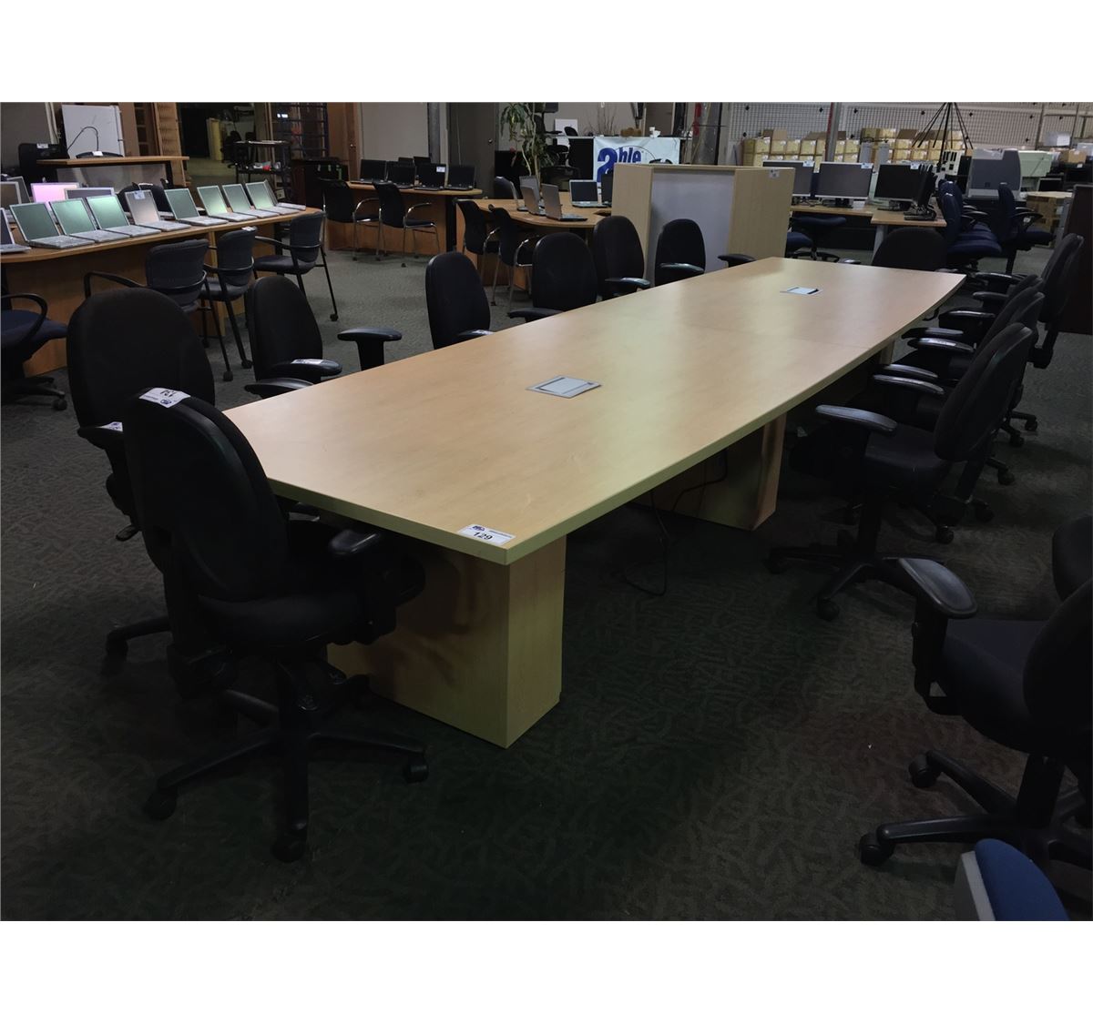 MAPLE 14' BOARD ROOM TABLE WITH INTEGRATED DATA AND POWER ROUTING
