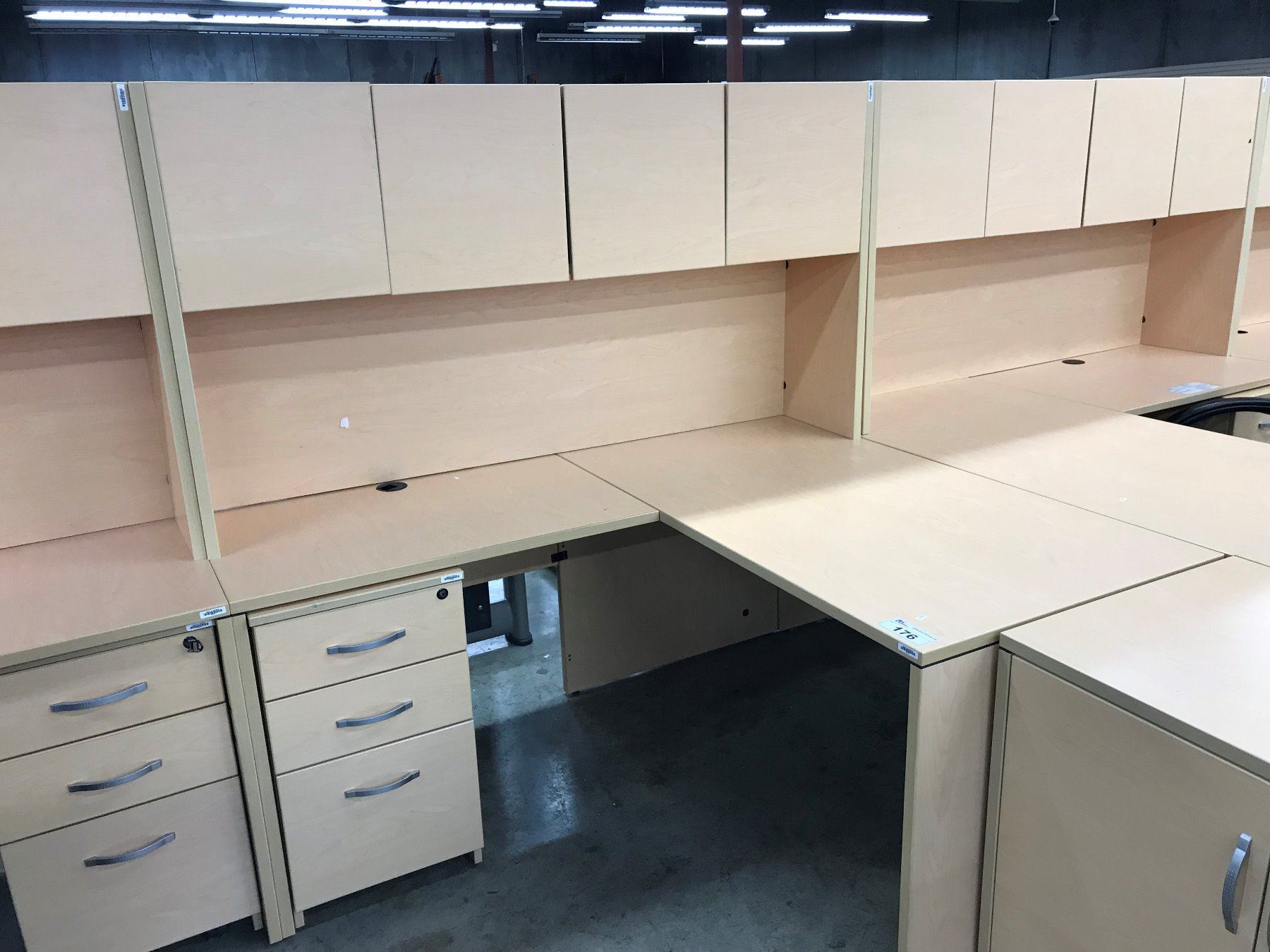 MAPLE 5.5'X5' CORNER COMPUTER TABLE COMES WITH HUTCH AND 3 DRAWER MOBILE PEDESTAL