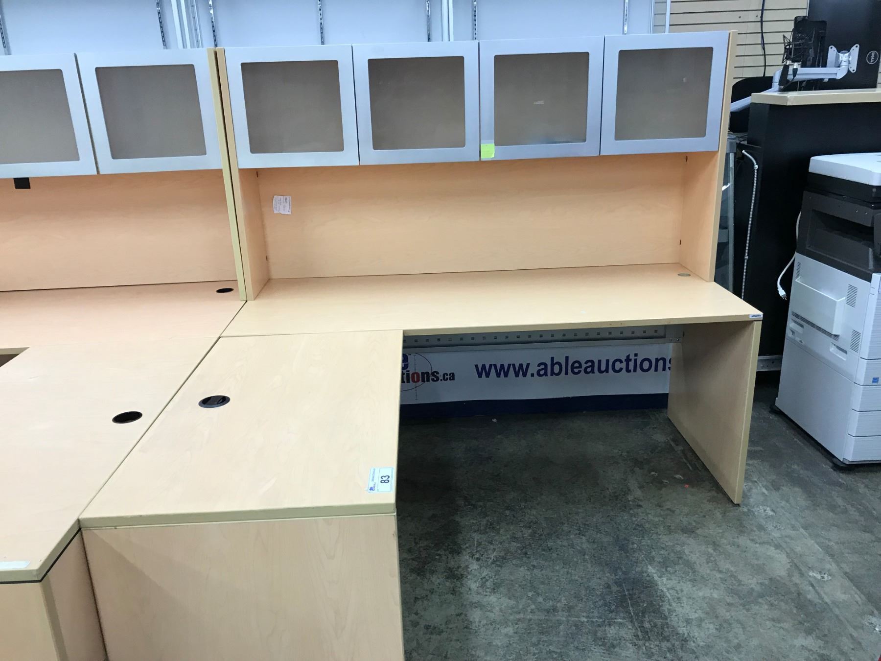 MAPLE 6' X 6' L-SHAPE EXECUTIVE DESK WITH FROSTED GLASS 4 DOOR HUTCH